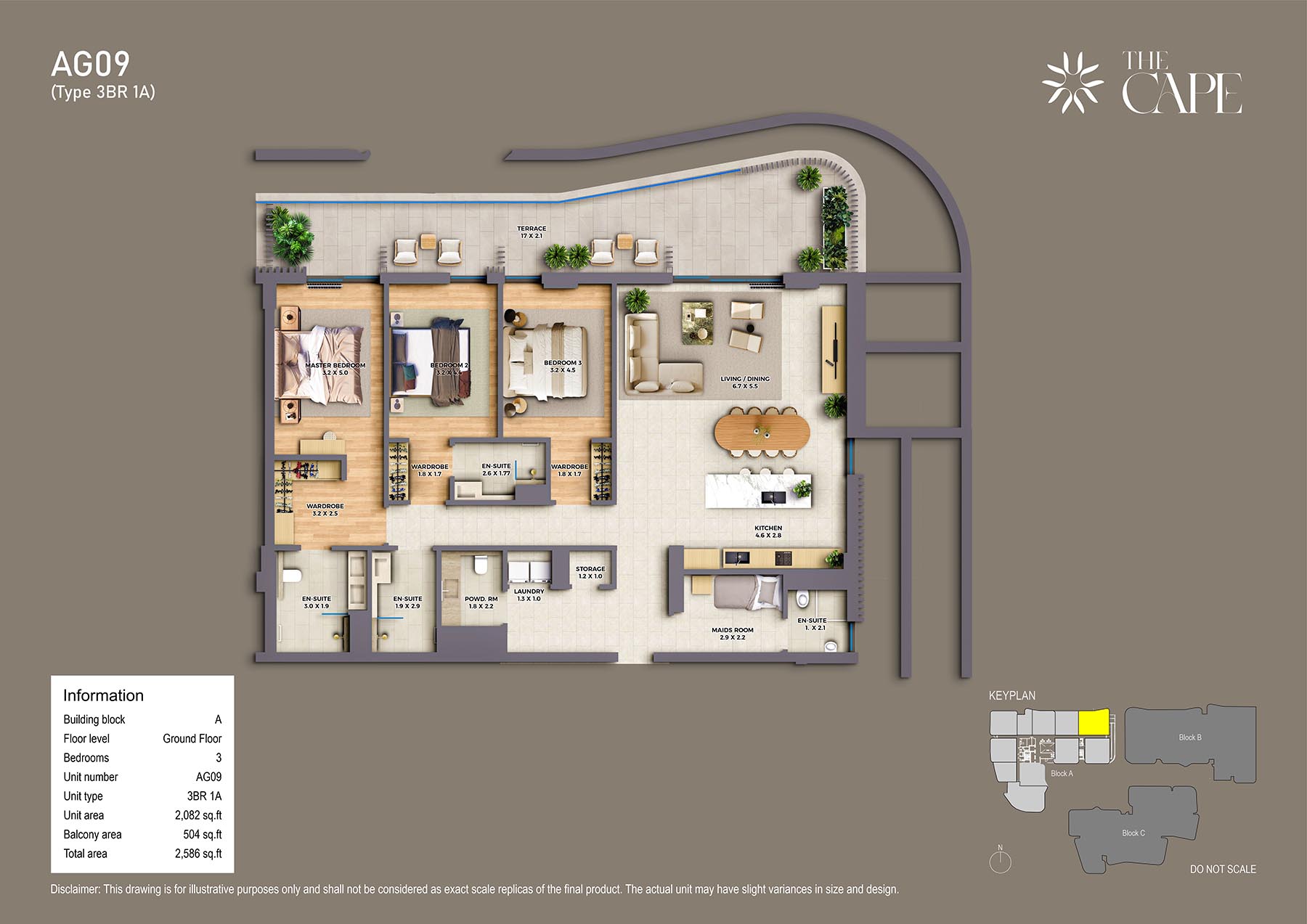 | Block A | 3 Bedrooms + Maid | Ground Floor Unit-AG09 (Type 3BR 1A) | 2586.00 Sq Ft | Click Here |