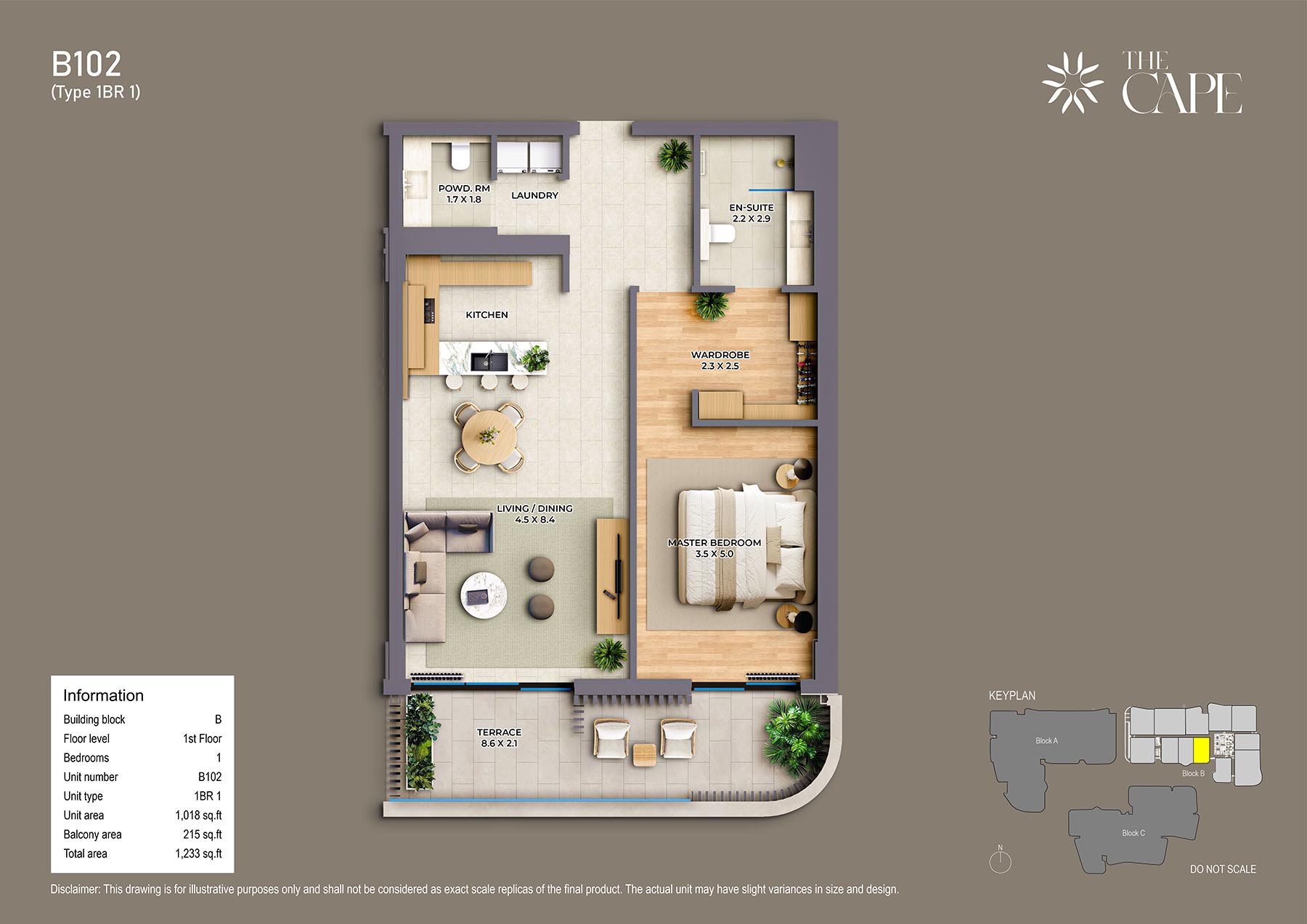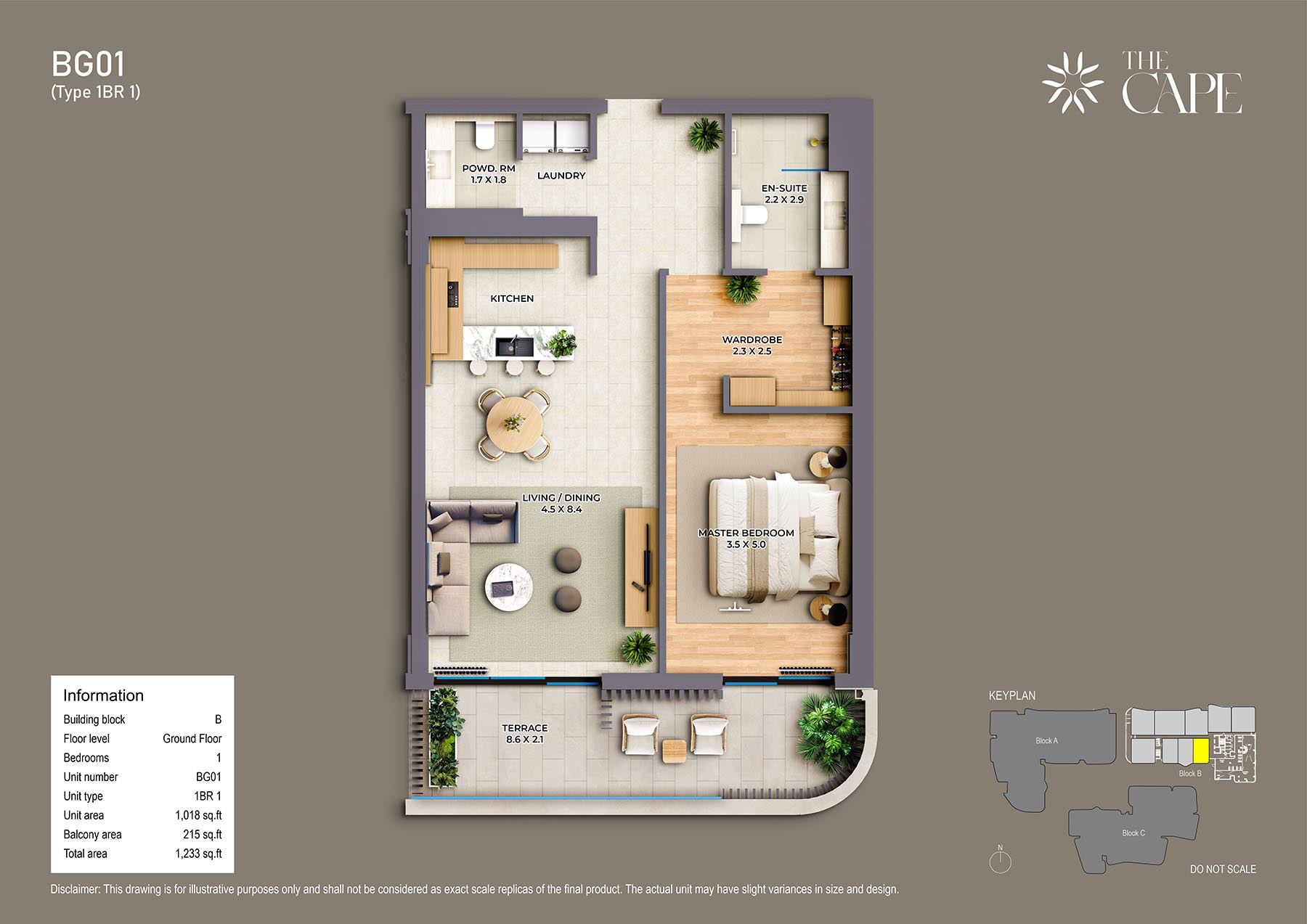 | Block B | 1 Bedroom | Ground Floor Unit-BG01 (Type 1BR 1) | 1233.00 Sq Ft | Click Here |