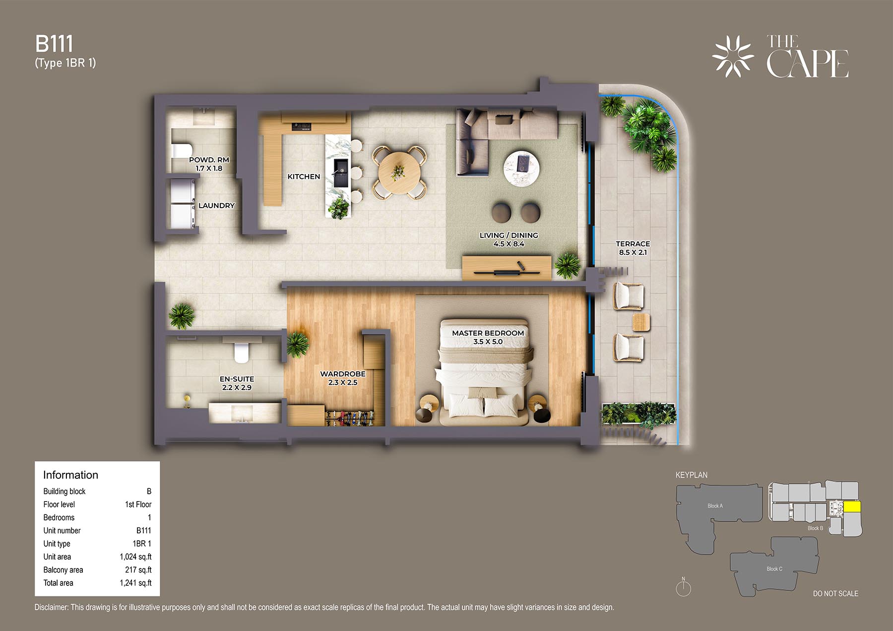 | Block B | 1 Bedroom | 3rd Floor Unit-B311 (Type 1BR 1) | 1241.00 Sq Ft | Click Here |