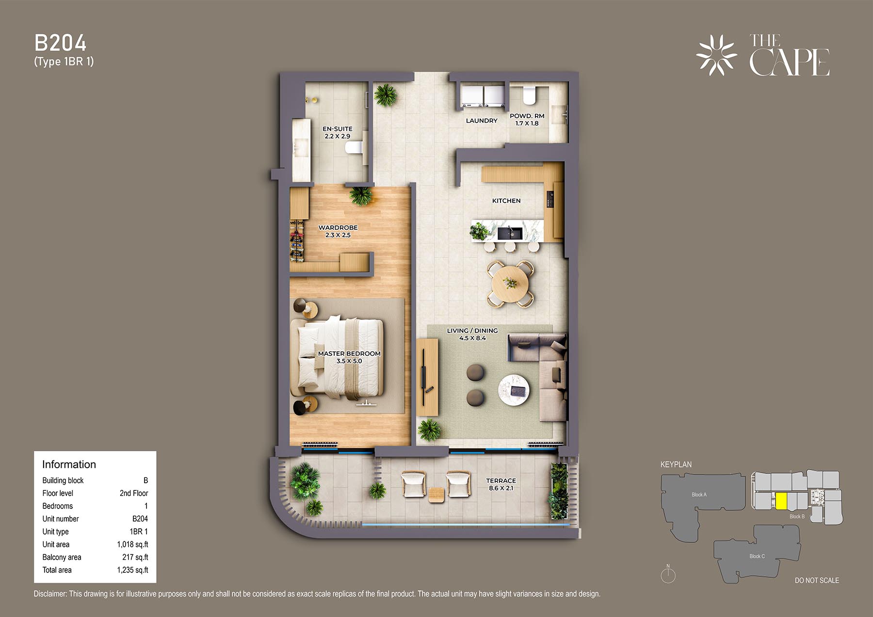 | Block B | 1 Bedroom | 2nd Floor Unit-B204 (Type 1BR 1) | 1235.00 Sq Ft | Click Here |