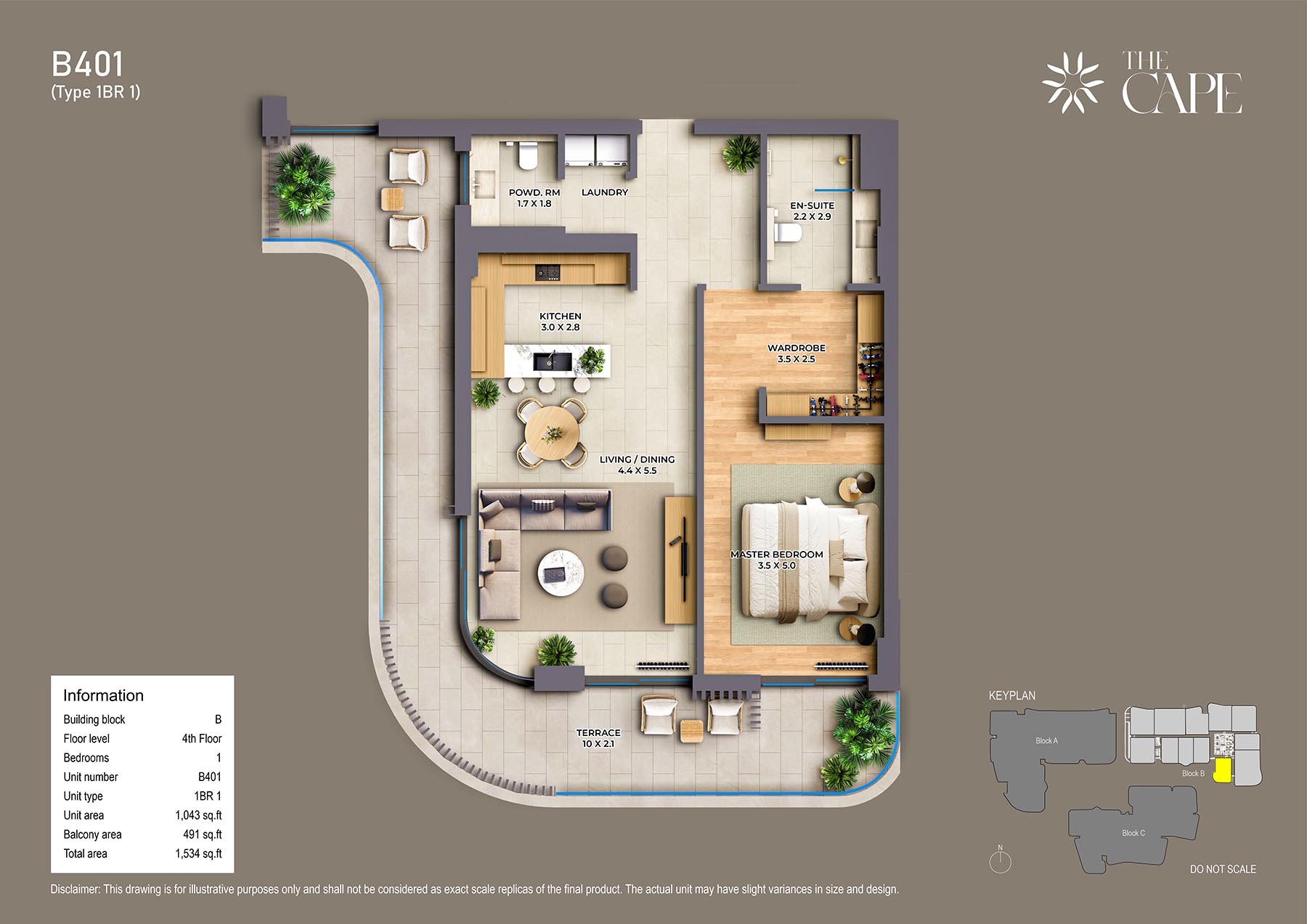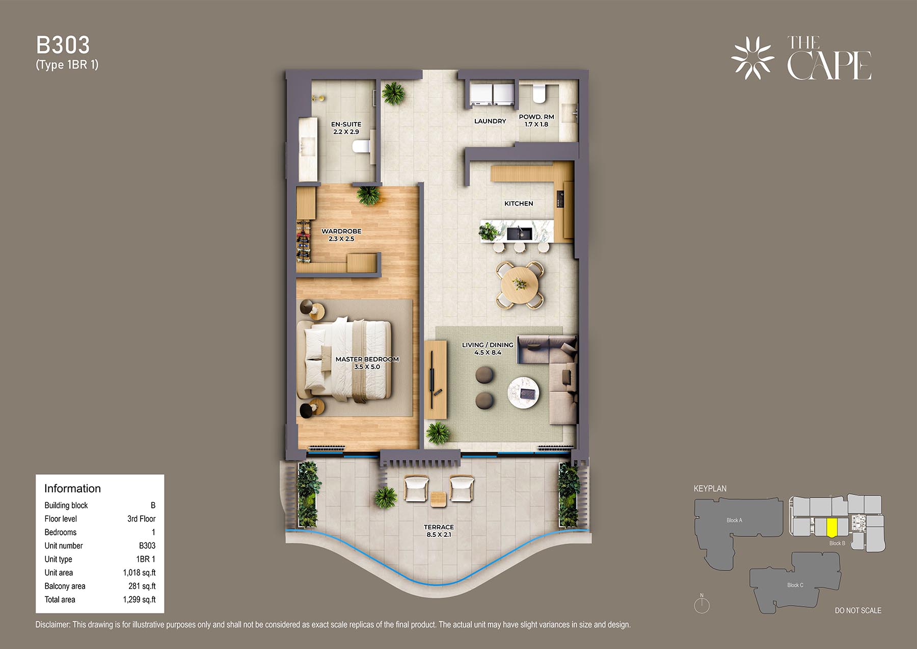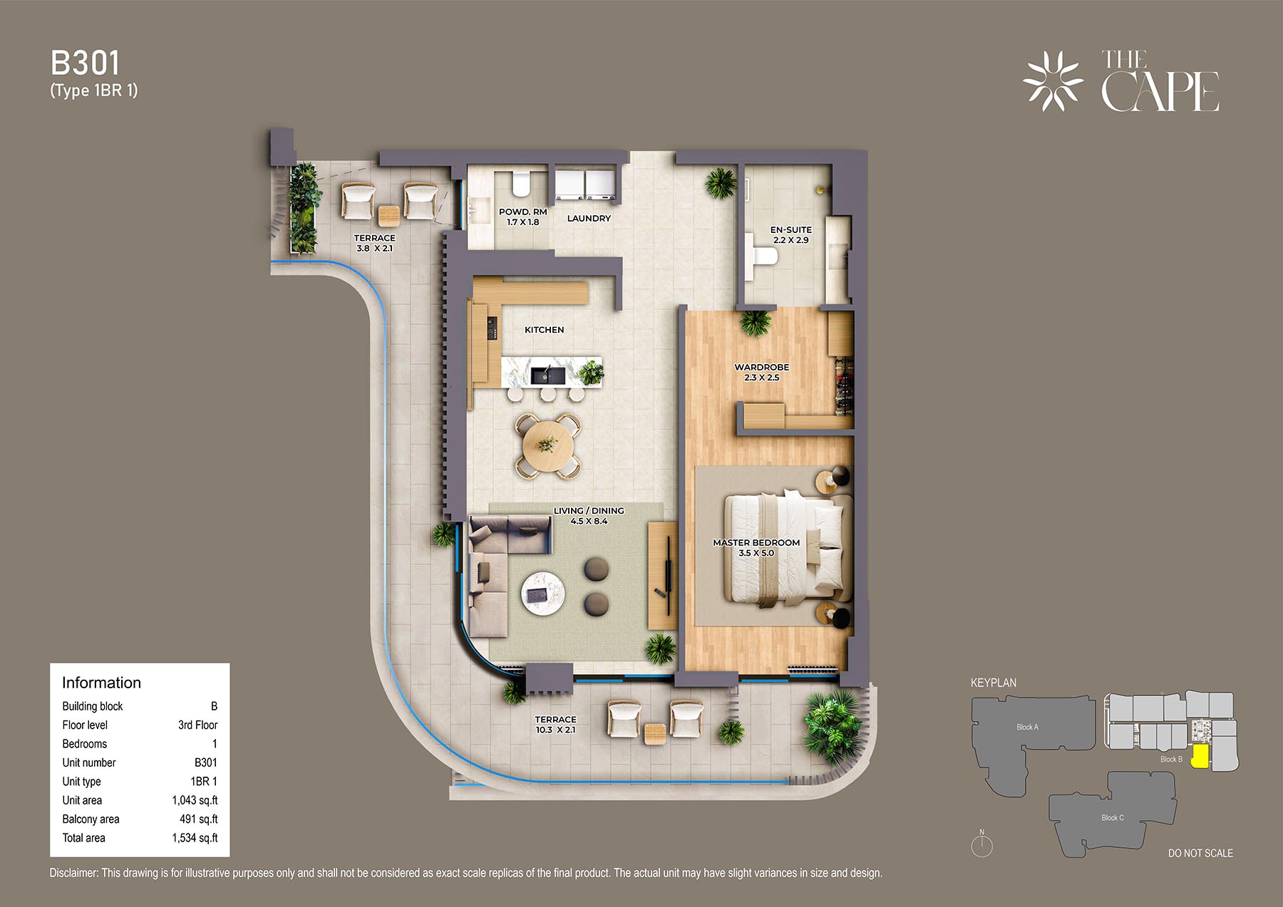 | Block B | 1 Bedroom | 3rd Floor Unit-B301 (Type 1BR 1) | 1534.00 Sq Ft | Click Here |