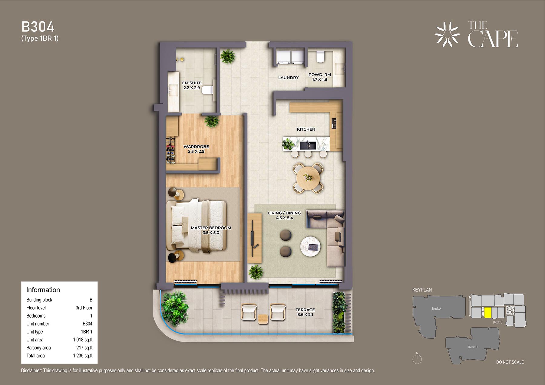 | Block B | 1 Bedroom | 3rd Floor Unit-B304 (Type 1BR 1) | 1235.00 Sq Ft | Click Here |