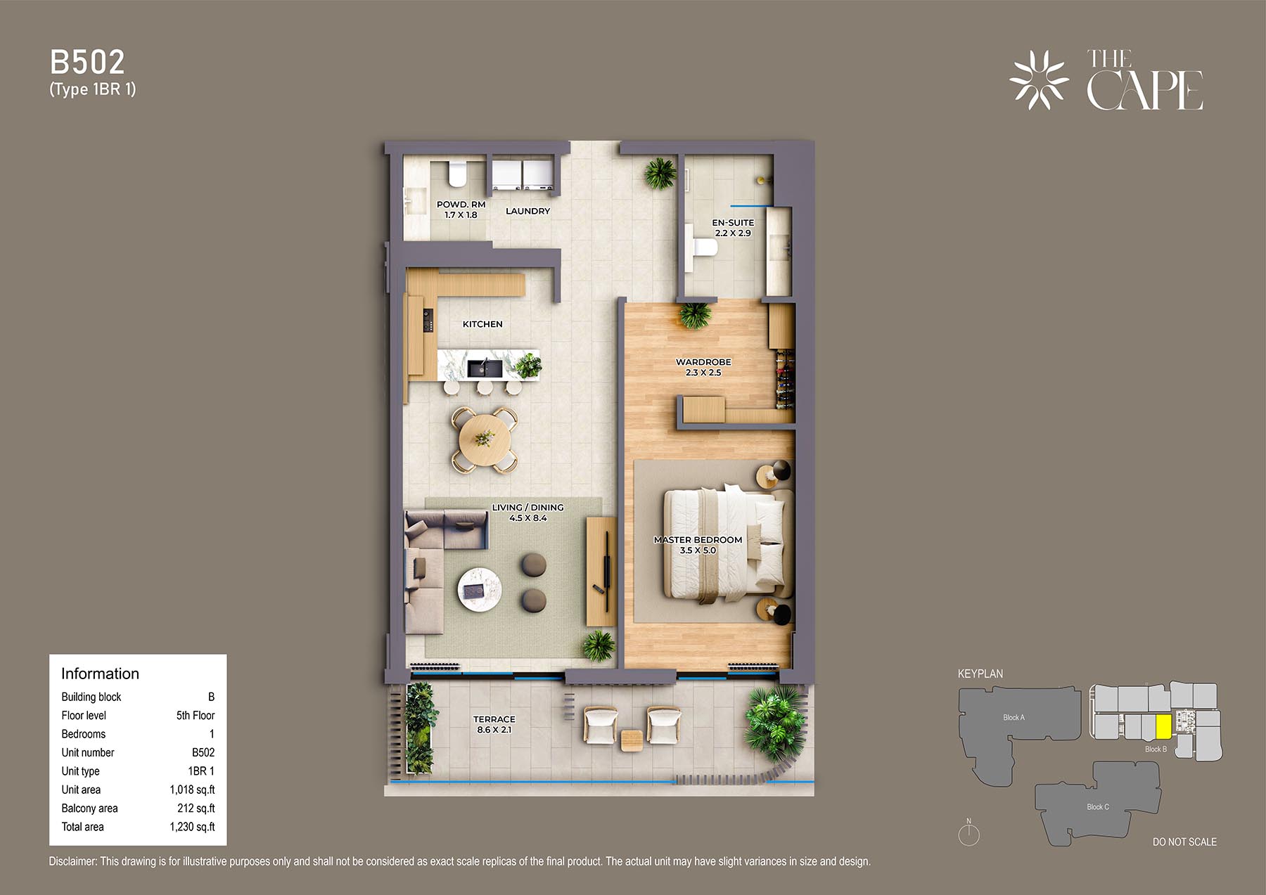 | Block B | 1 Bedroom | 8th Floor Unit-B802 (Type 1BR 1) | 1299.00 Sq Ft | Click Here |