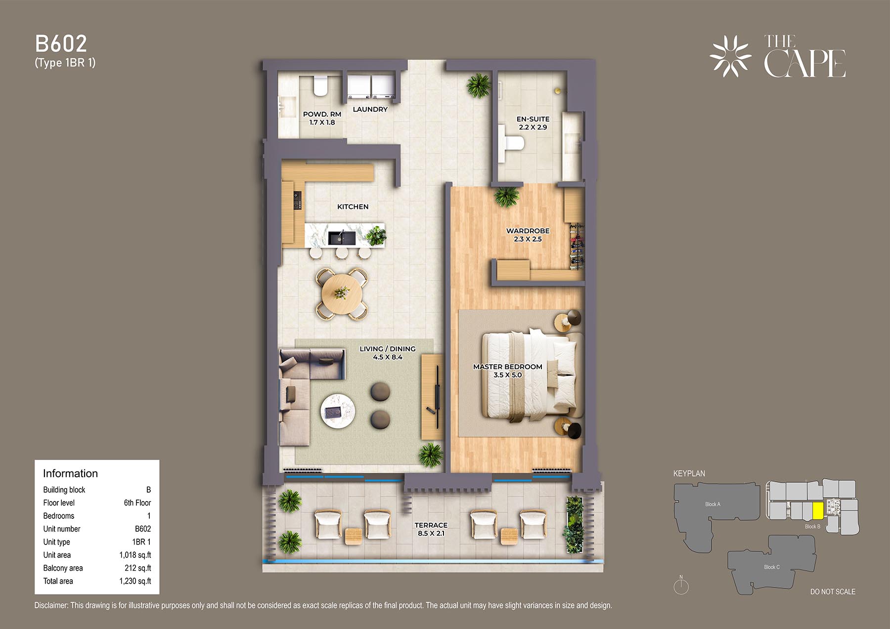 | Block B | 1 Bedroom | 6th Floor Unit-B602 (Type 1BR 1) | 1230.00 Sq Ft | Click Here |