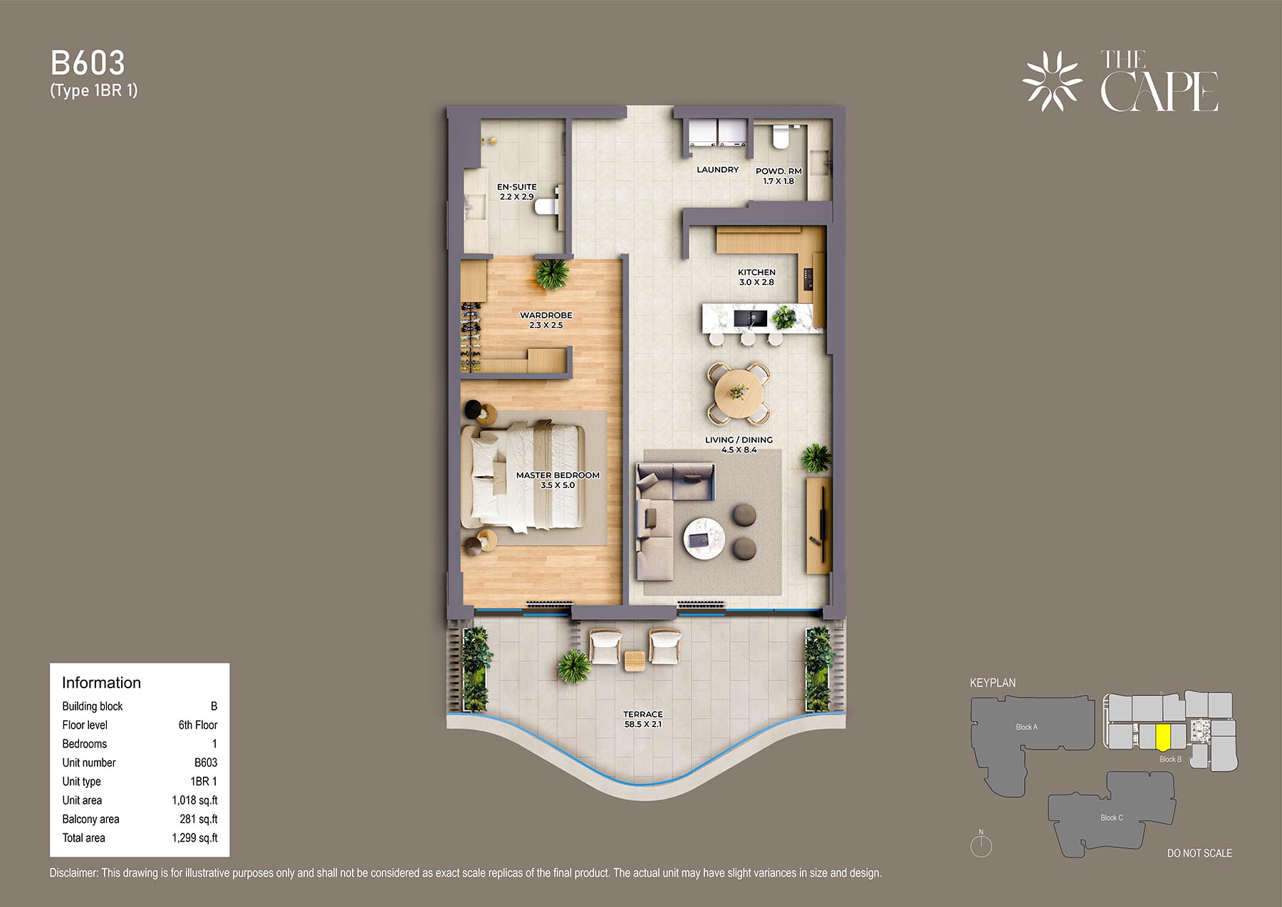 | Block B | 1 Bedroom | 6th Floor Unit-B603 (Type 1BR 1) | 1299.00 Sq Ft | Click Here |