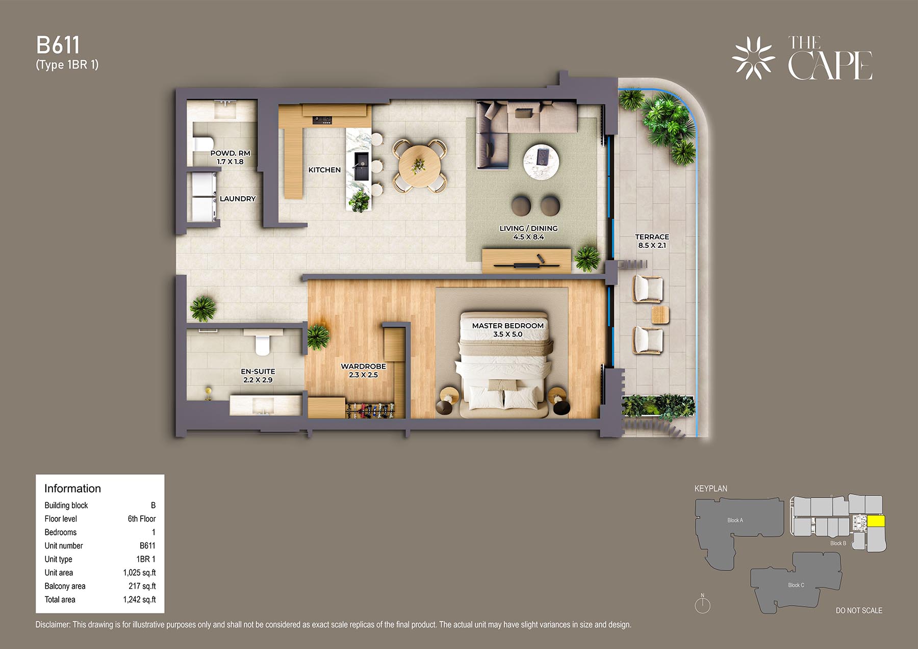 | Block B | 1 Bedroom | 6th Floor Unit-B611 (Type 1BR 1) | 1242.00 Sq Ft | Click Here |