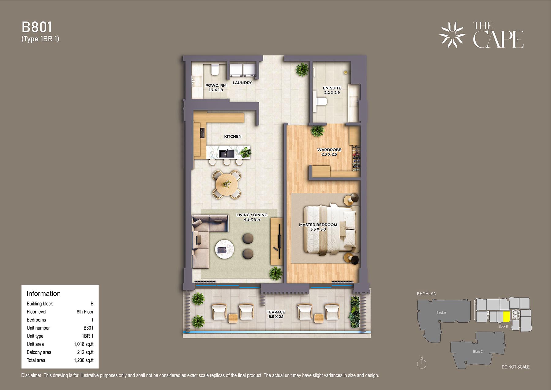 | Block B | 1 Bedroom | 8th Floor Unit-B801 (Type 1BR 1) | 1230.00 Sq Ft | Click Here |