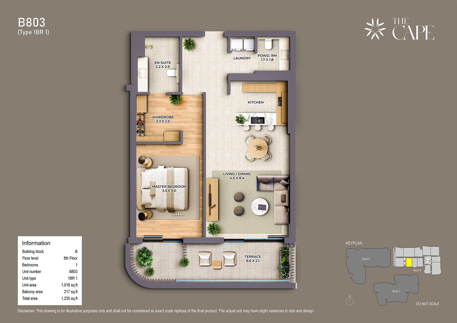 | Block B | 1 Bedroom | 8th Floor Unit-B803 (Type 1BR 1) | 1235.00 Sq Ft | Click Here |