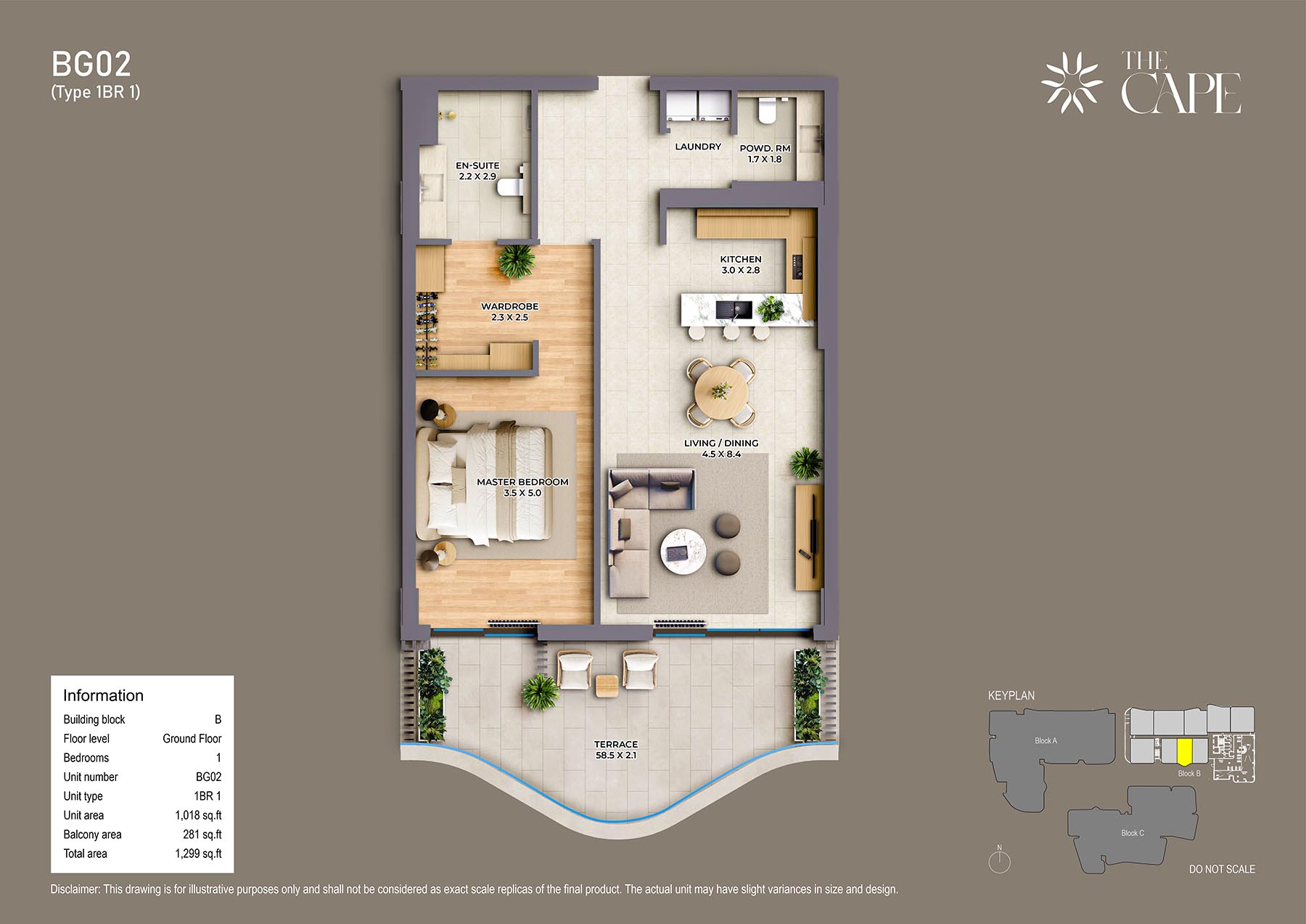 | Block B | 1 Bedroom | Ground Floor Unit-BG02 (Type 1BR 1) | 1299.00 Sq Ft | Click Here |