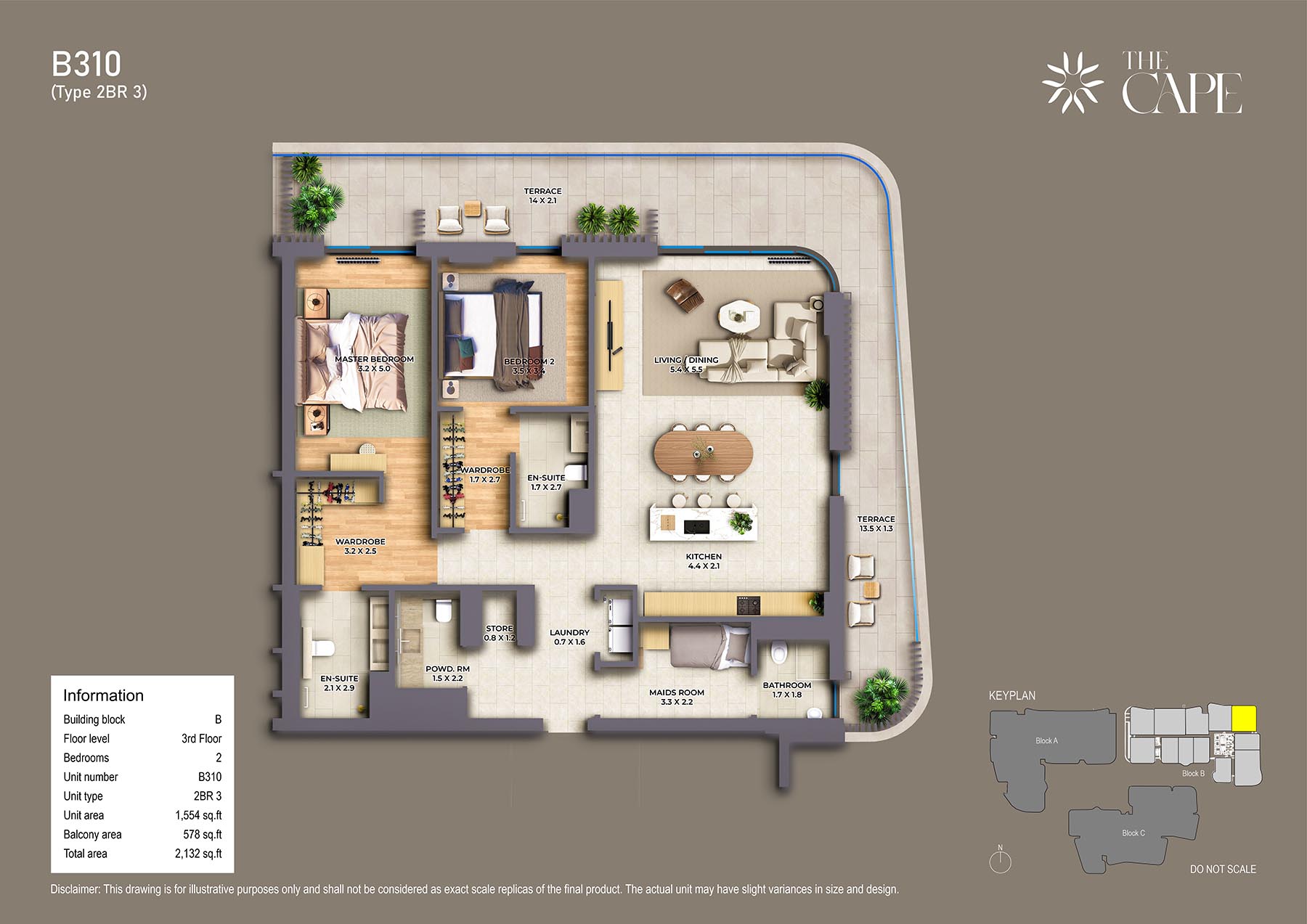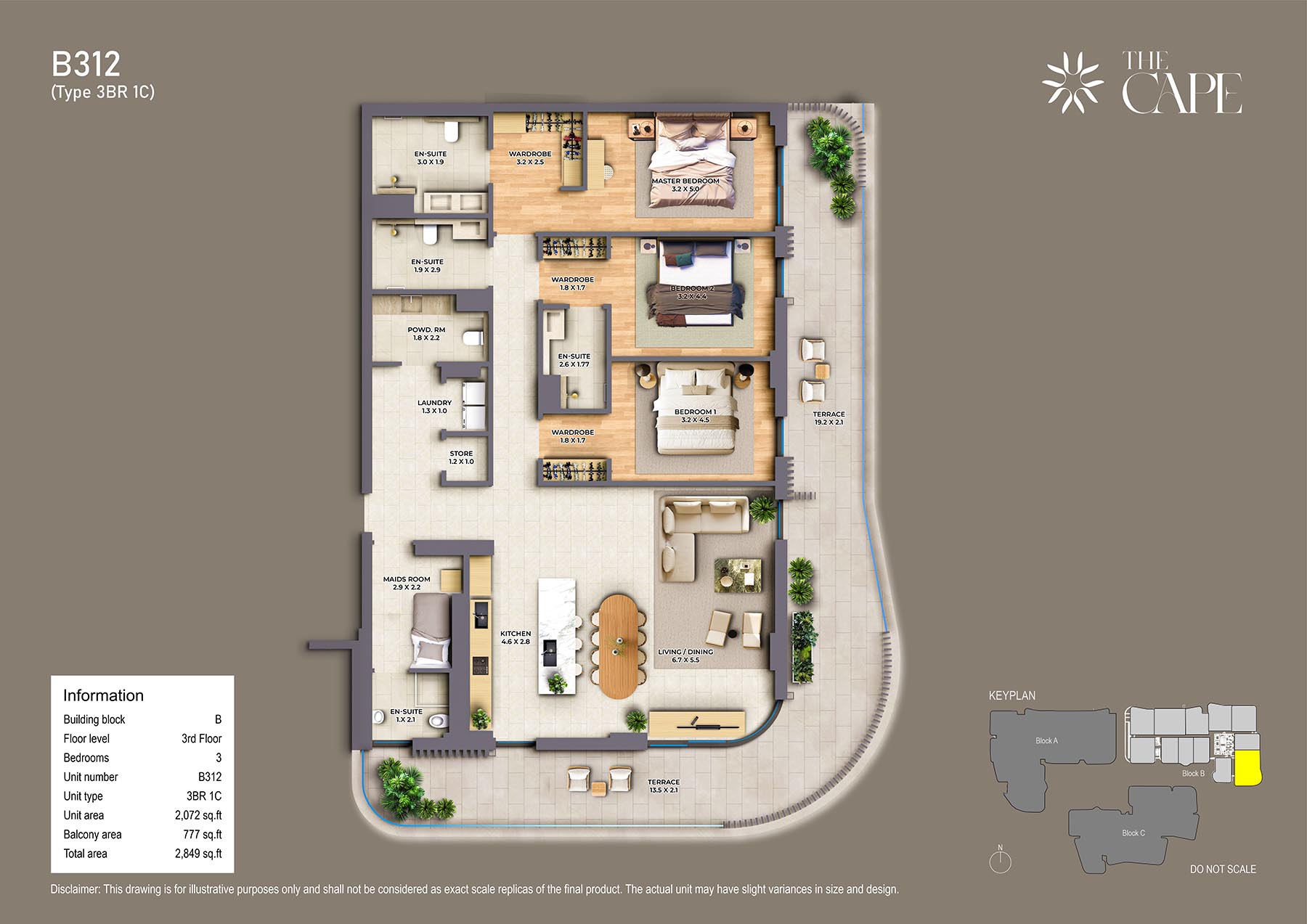 | Block C | 3 Bedrooms + Maid | 3rd Floor Unit-C310 (Type 3BR 3) | 2677.00 Sq Ft | Click Here |