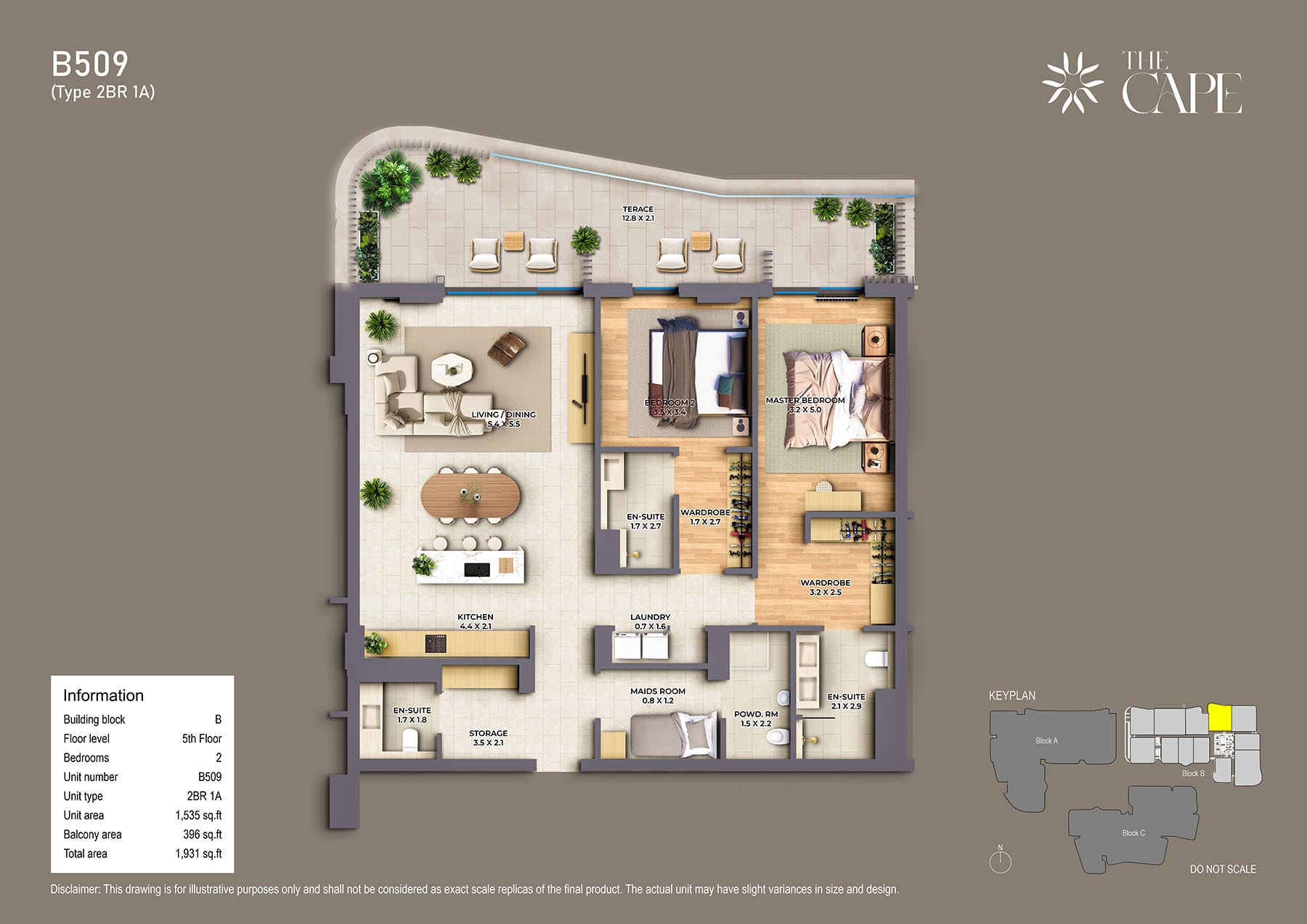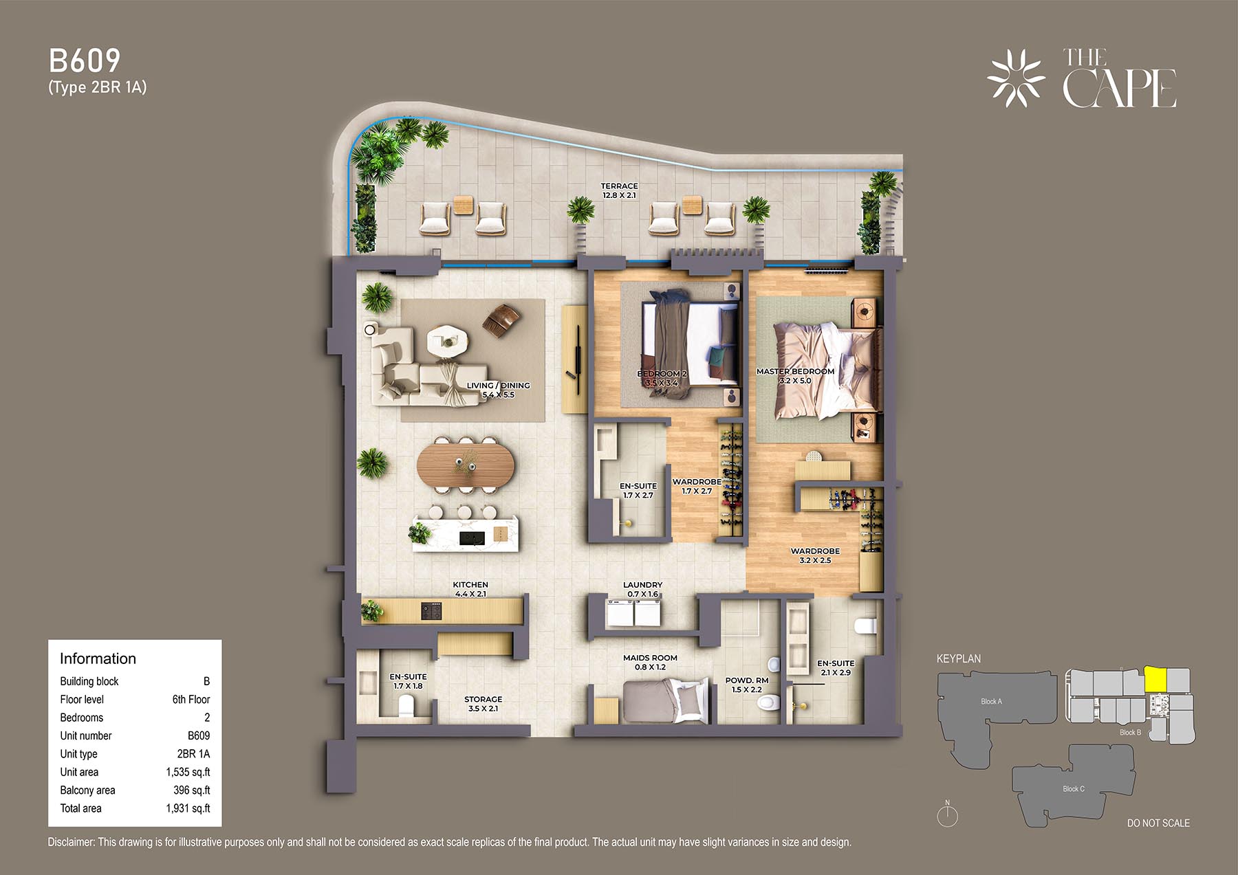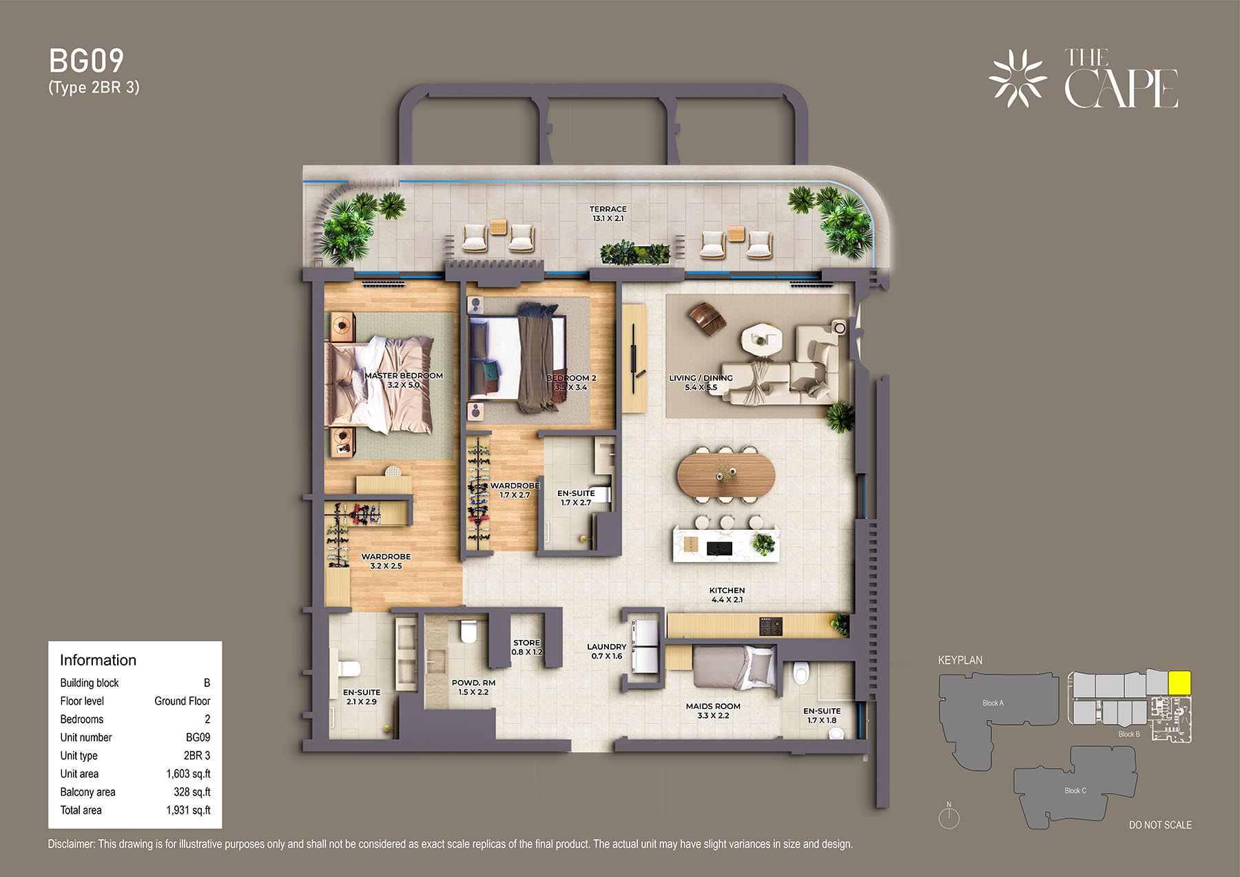 | Block B | 2 Bedrooms + Maid | Ground Floor Unit-BG09 (Type 2BR 3) | 1931.00 Sq Ft | Click Here |