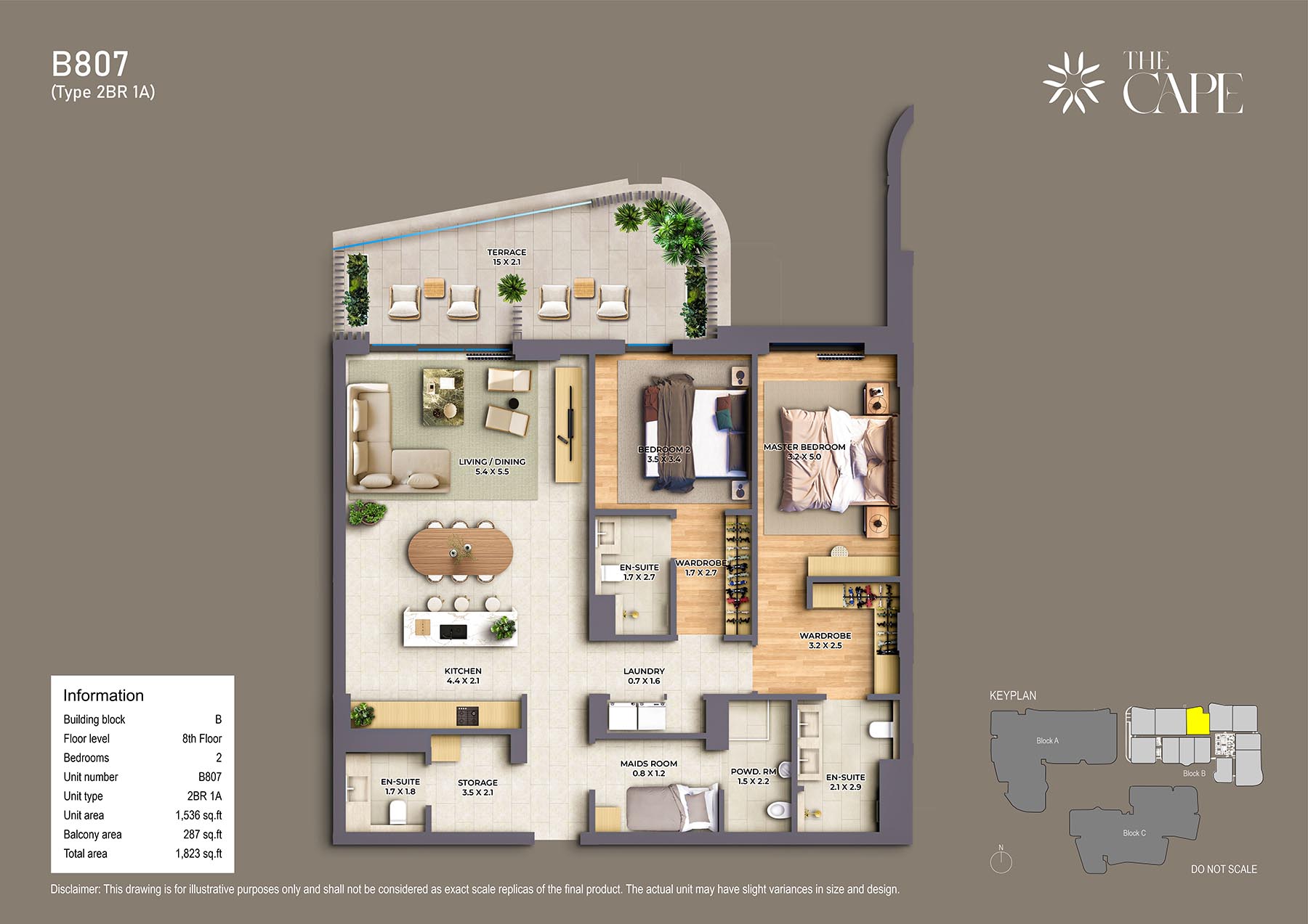 | Block B | 2 Bedrooms + Maid | Ground Floor Unit-BG07 (Type 2BR 1A) | 1823.00 Sq Ft | Click Here |