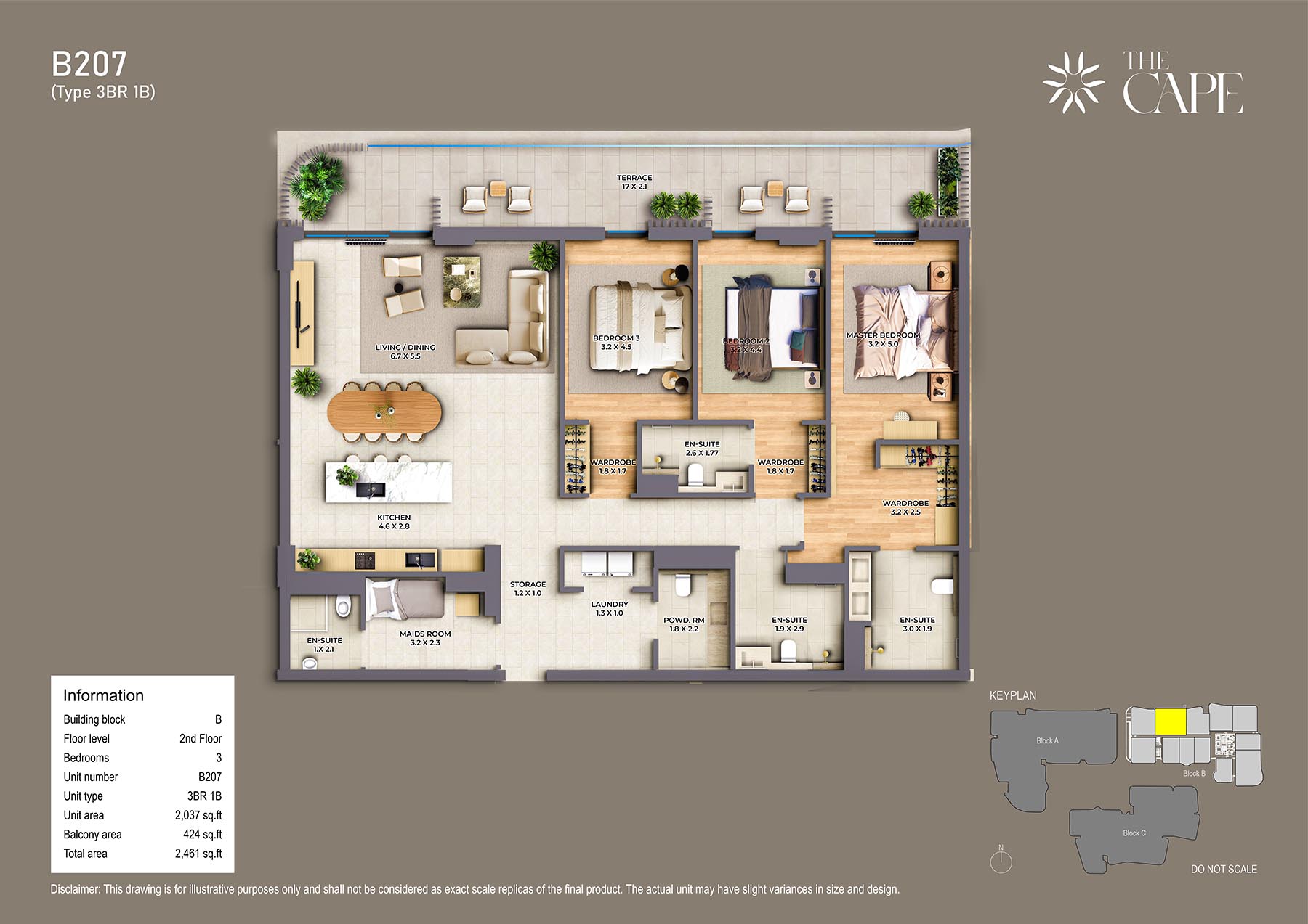 | Block B | 3 Bedrooms + Maid | 2nd Floor Unit-B207 (Type 3BR 1B) | 2461.00 Sq Ft | Click Here |