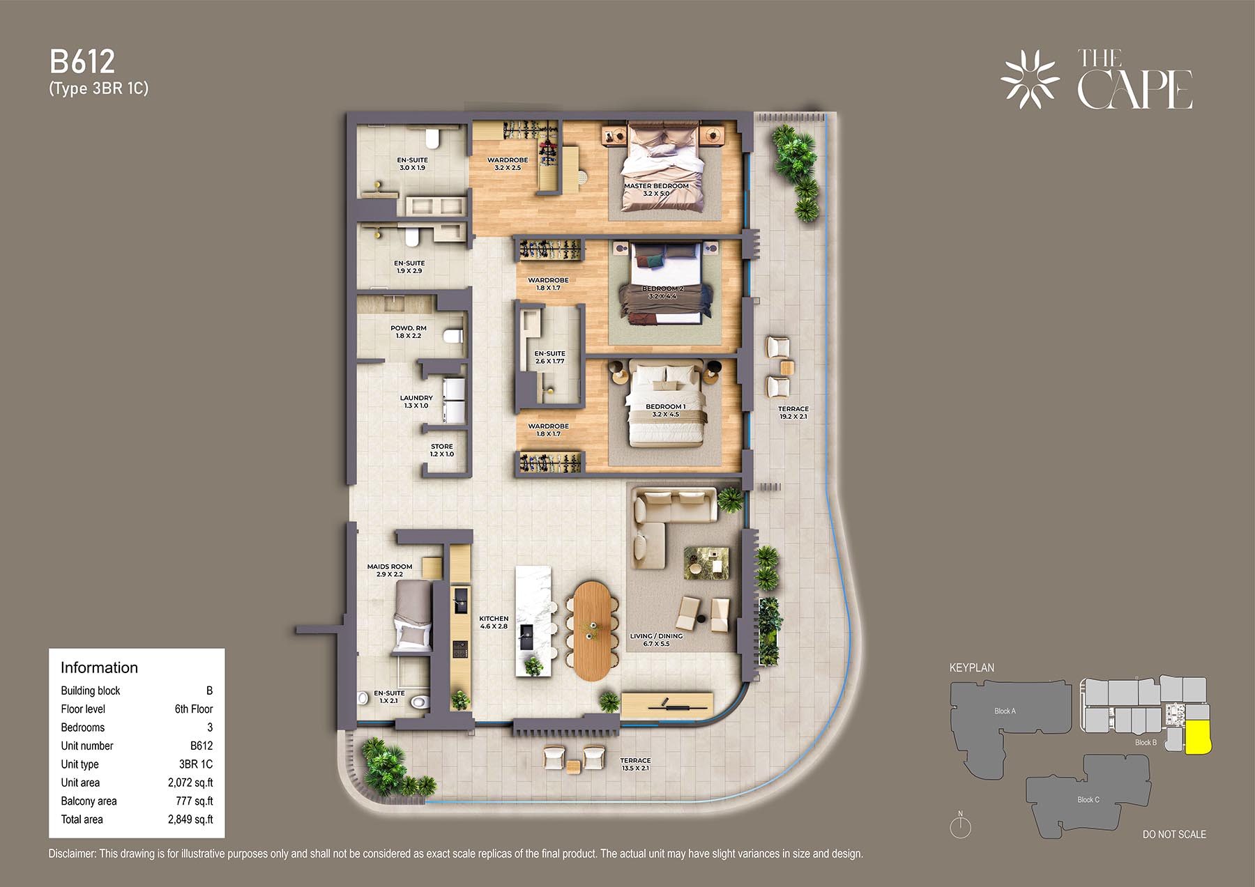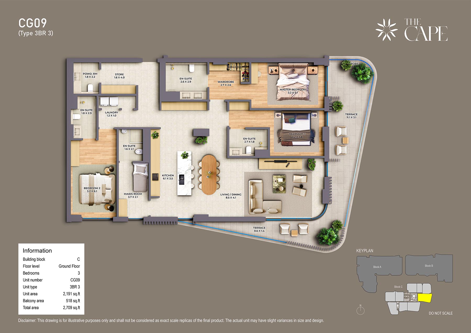 | Block C | 3 Bedrooms + Maid | Ground Floor Unit-CG09 (Type 3BR 3) | 2709.00 Sq Ft | Click Here |