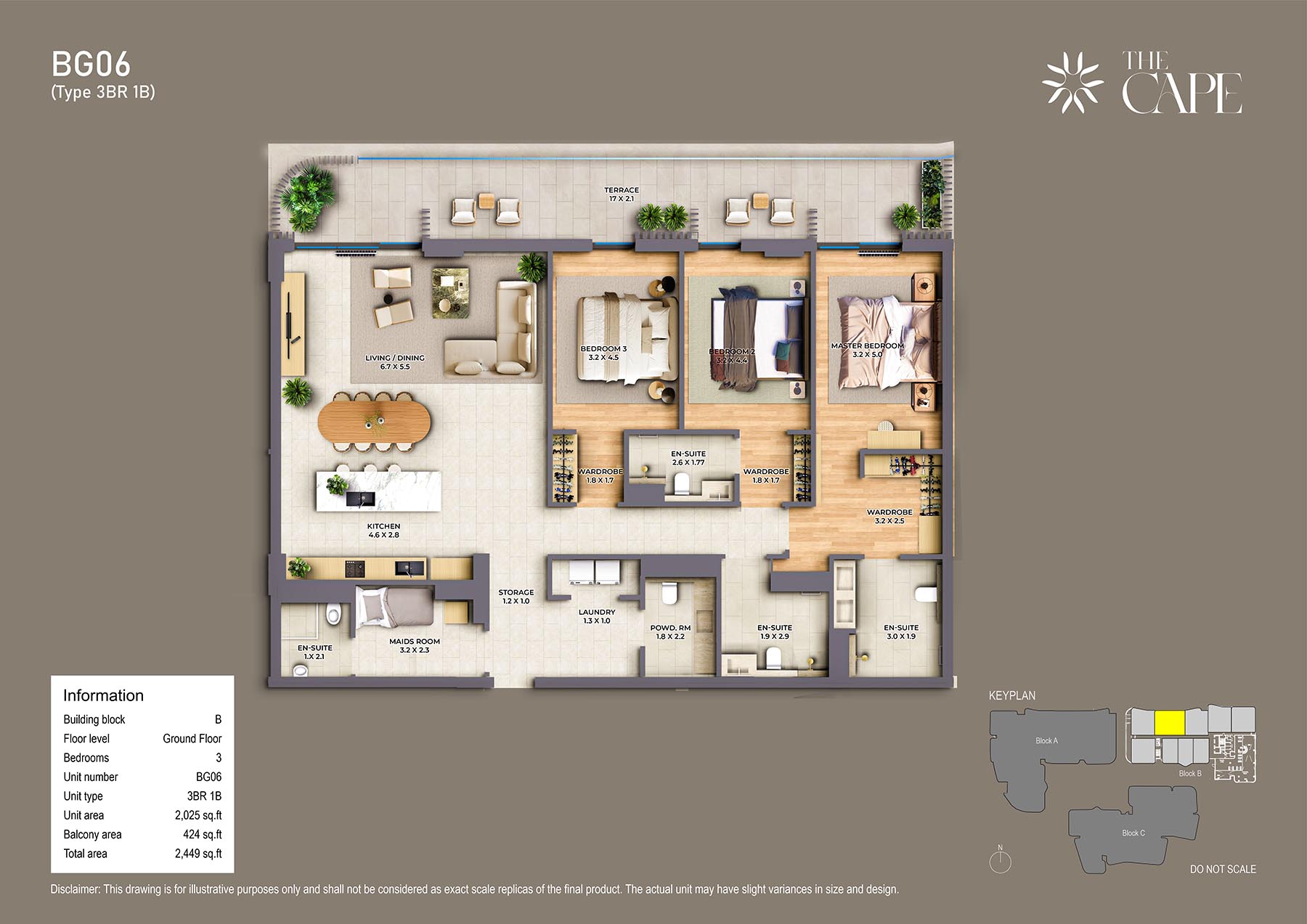 | Block B | 3 Bedrooms + Maid | Ground Floor Unit-BG06 (Type 3BR 1B) | 2449.00 Sq Ft | Click Here |