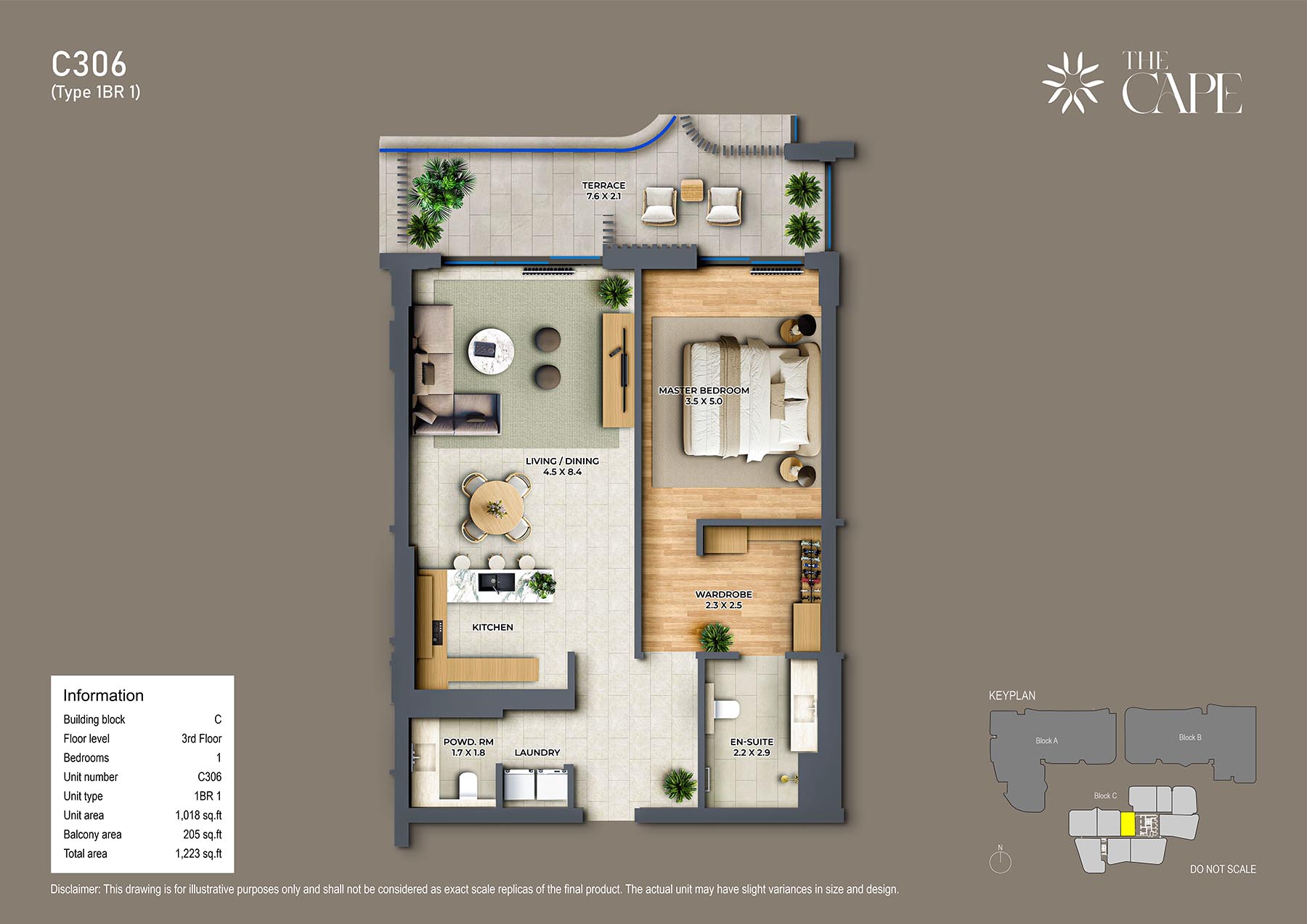 | Block C | 1 Bedroom | 3rd Floor Unit-C306 (Type 1BR 1) | 1223.00 Sq Ft | Click Here |