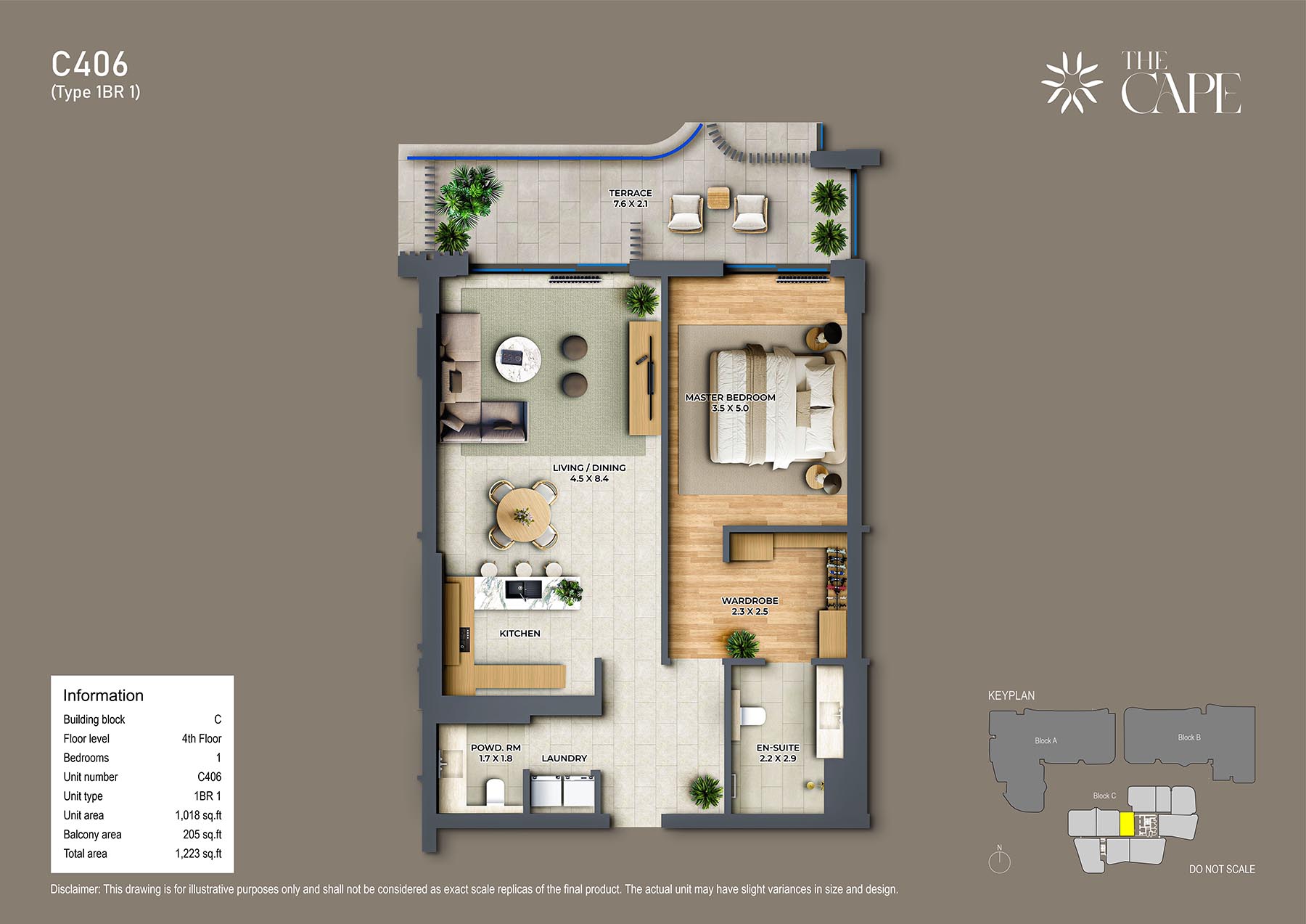 | Block C | 1 Bedroom | 2nd Floor Unit-C206 (Type 1BR 1) | 1223.00 Sq Ft | Click Here |