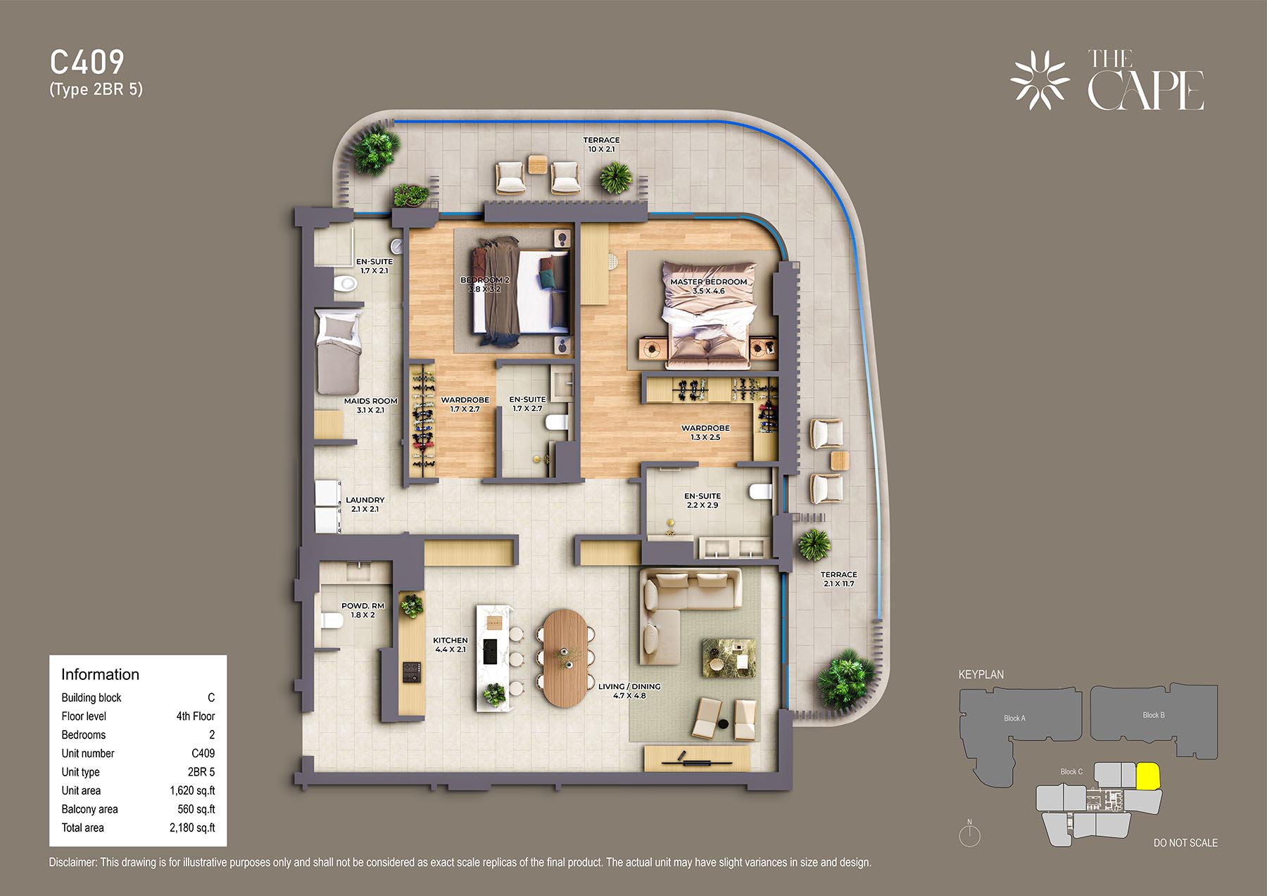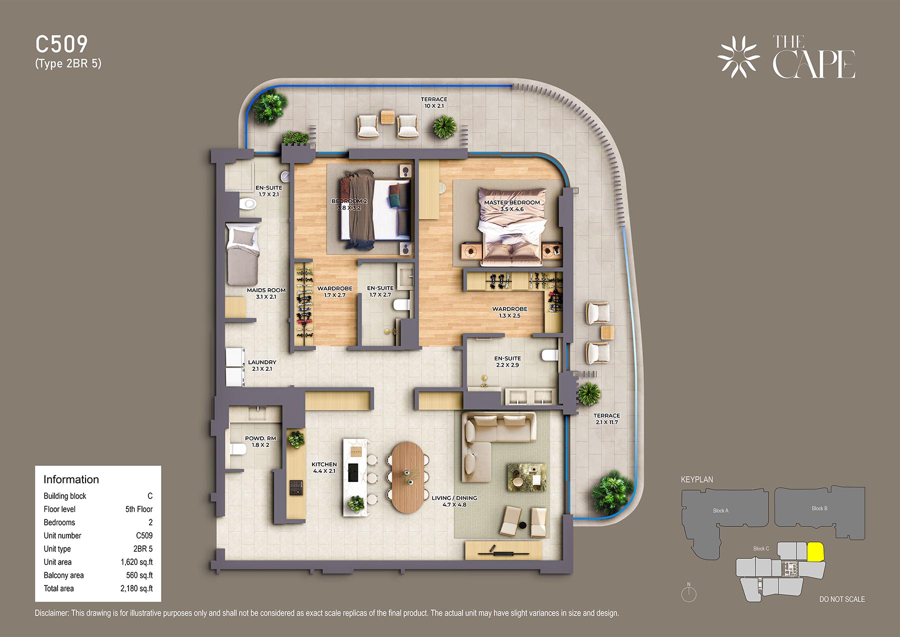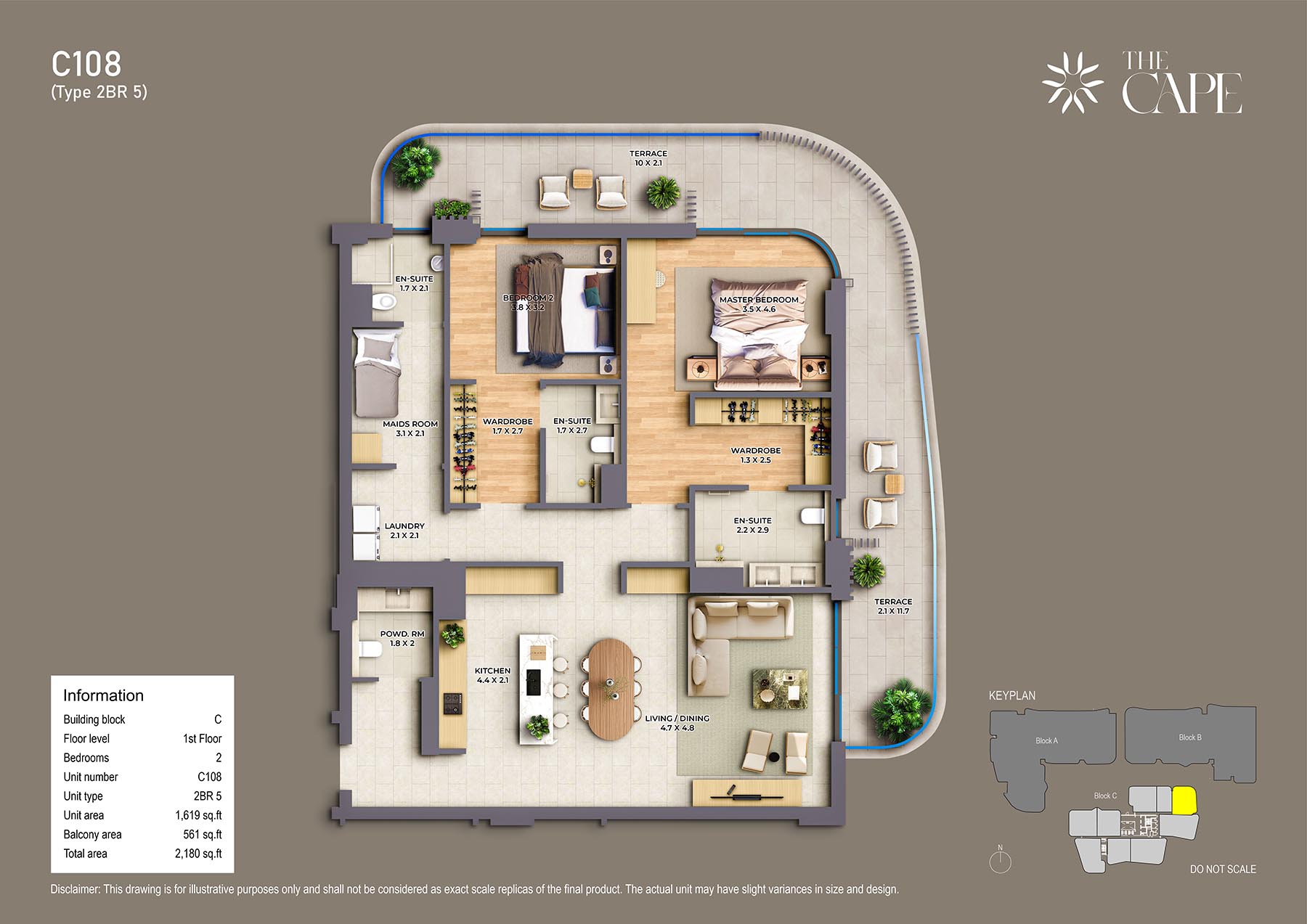 | Block C | 2 Bedrooms + Maid | 1st Floor Unit-C108 (Type 2BR 5) | 2180.00 Sq Ft | Click Here |
