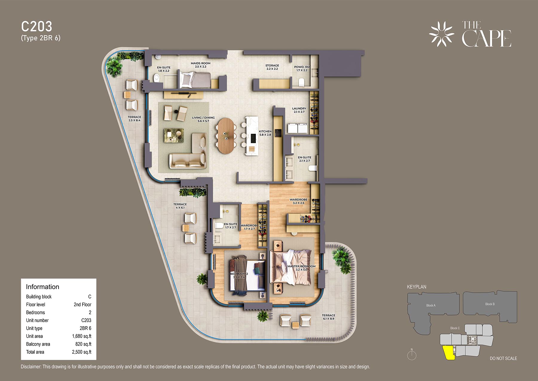 | Block C | 2 Bedrooms + Maid | 2nd Floor Unit-C203 (Type 2BR 6) | 2500.00 Sq Ft | Click Here |