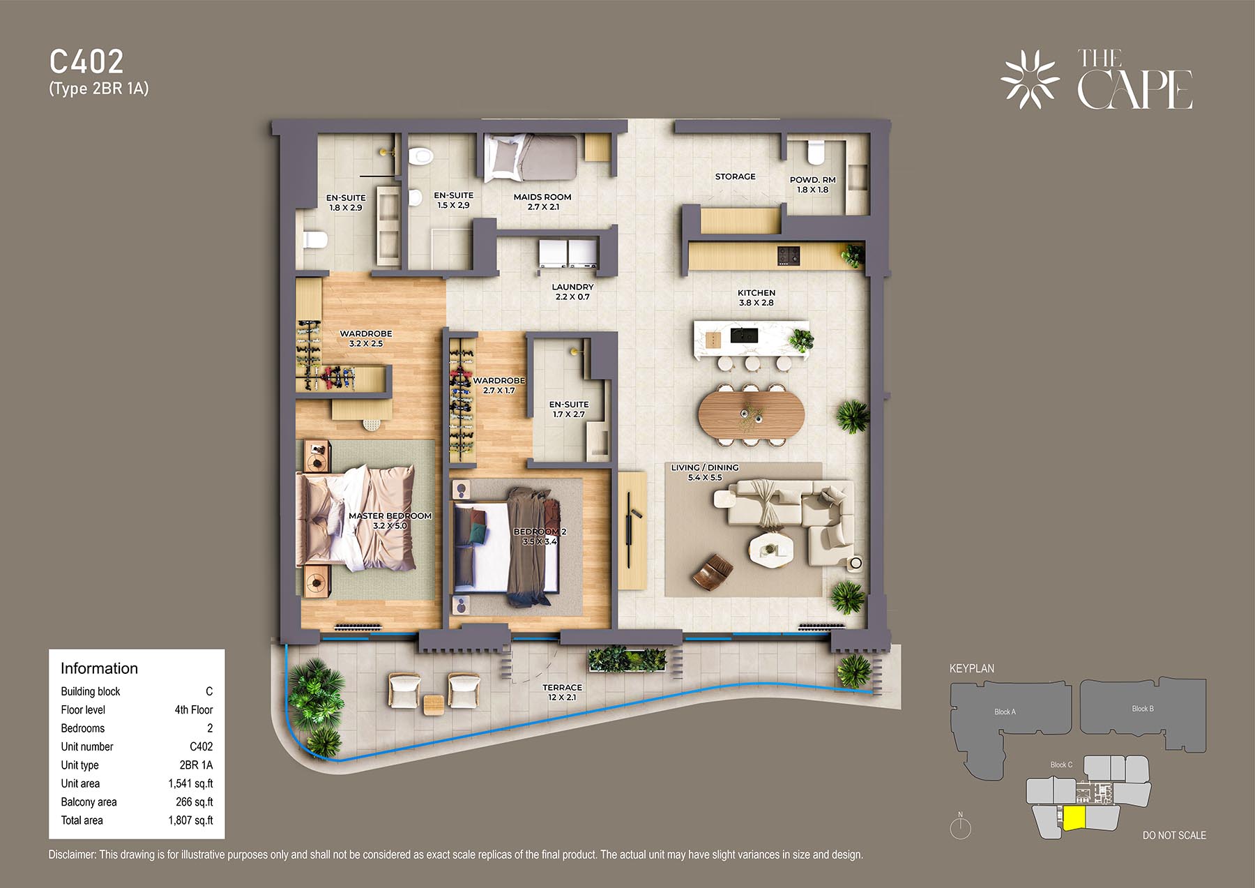 | Block C | 2 Bedrooms + Maid | 2nd Floor Unit-C202 (Type 2BR 1A) | 1807.00 Sq Ft | Click Here |