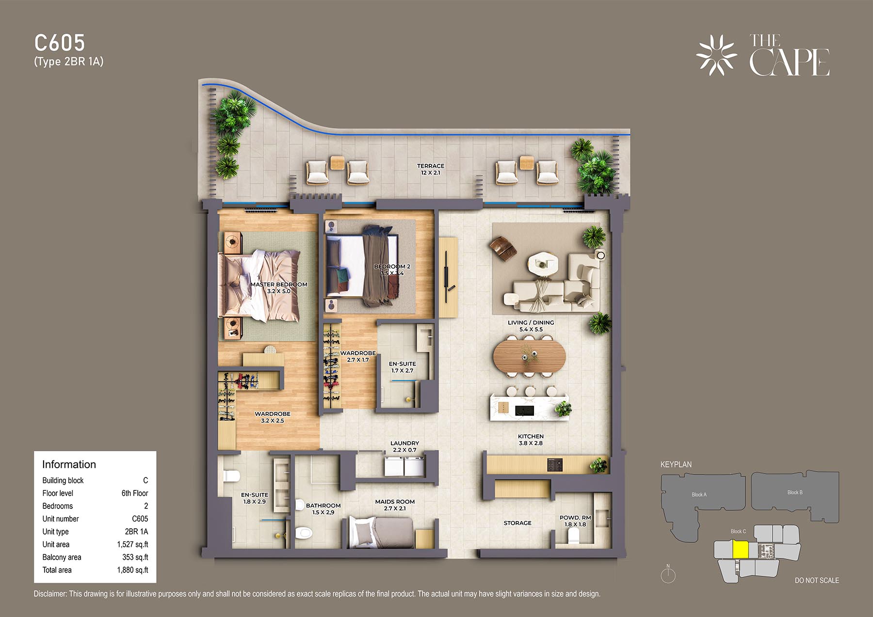 | Block C | 2 Bedrooms + Maid | 6th Floor Unit-C605 (Type 2BR 1A) | 1880.00 Sq Ft | Click Here |