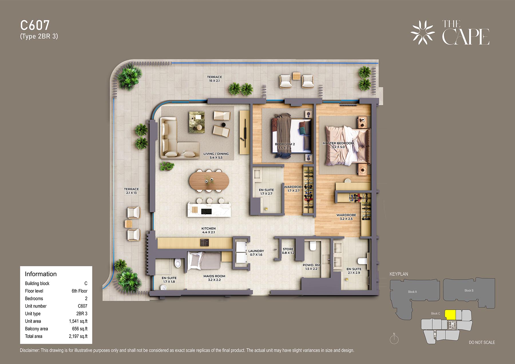 | Block C | 2 Bedrooms + Maid | 6th Floor Unit-C607 (Type 2BR 3) | 2197.00 Sq Ft | Click Here |