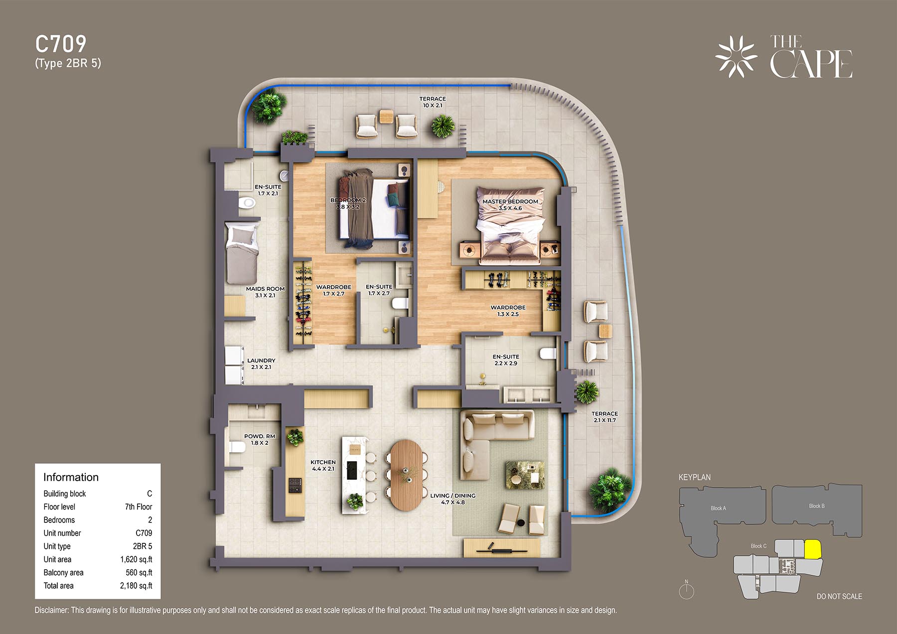 | Block C | 2 Bedrooms + Maid | 7th Floor Unit-C709 (Type 2BR 5) | 2180.00 Sq Ft | Click Here |