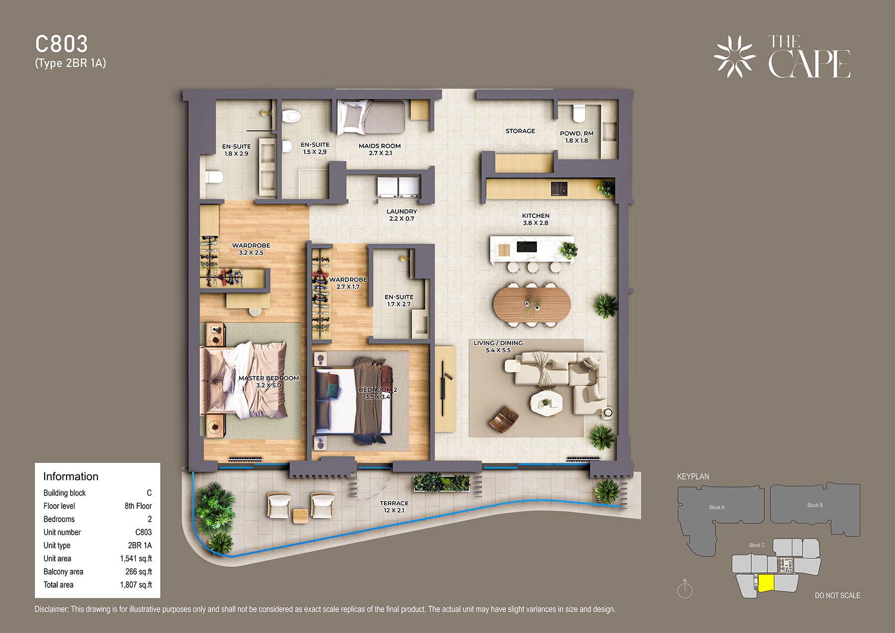 | Block C | 2 Bedrooms + Maid | 8th Floor Unit-C803 (Type 2BR 1A) | 1807.00 Sq Ft | Click Here |