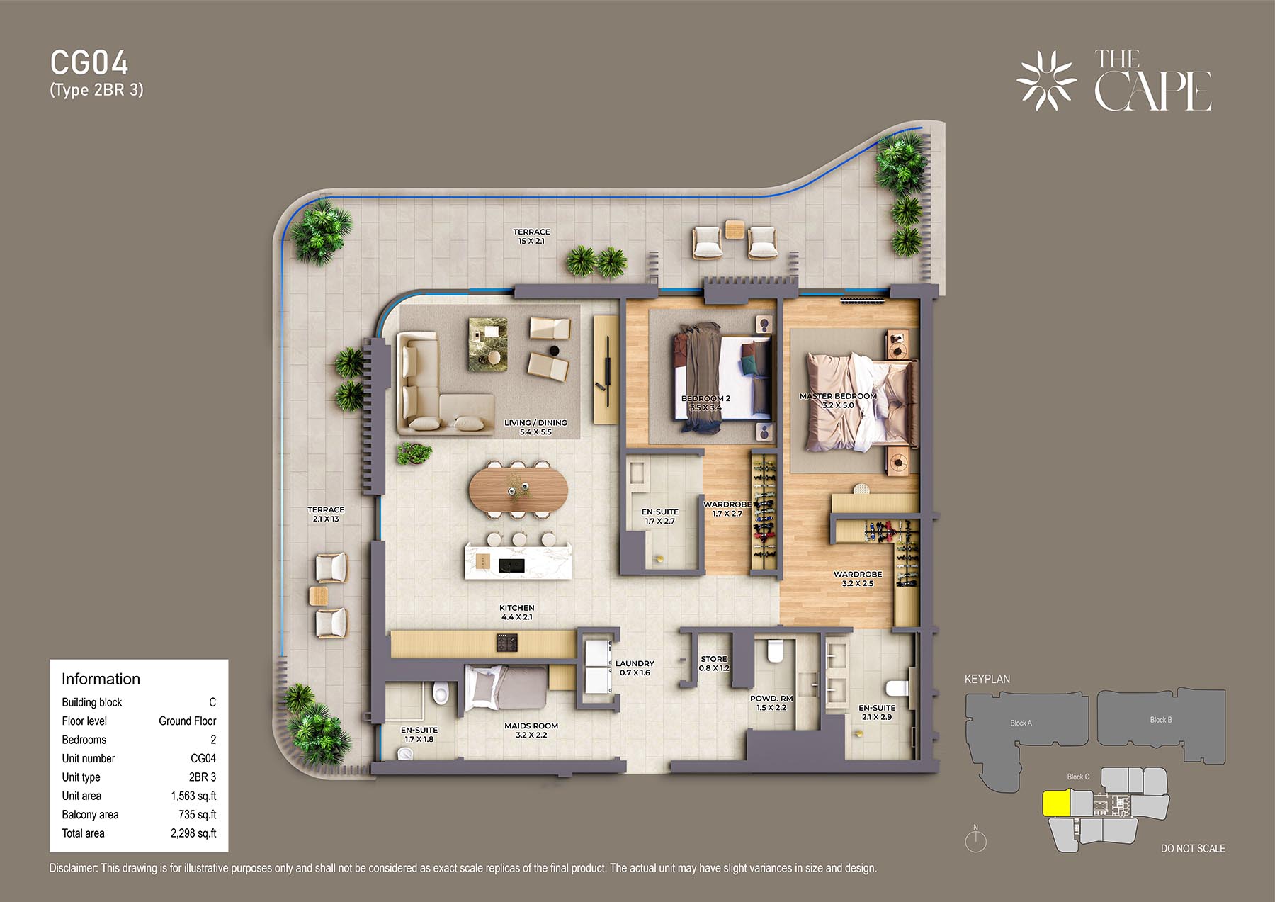 | Block C | 2 Bedrooms + Maid | Ground Floor Unit-CG04 (Type 2BR 3) | 2298.00 Sq Ft | Click Here |