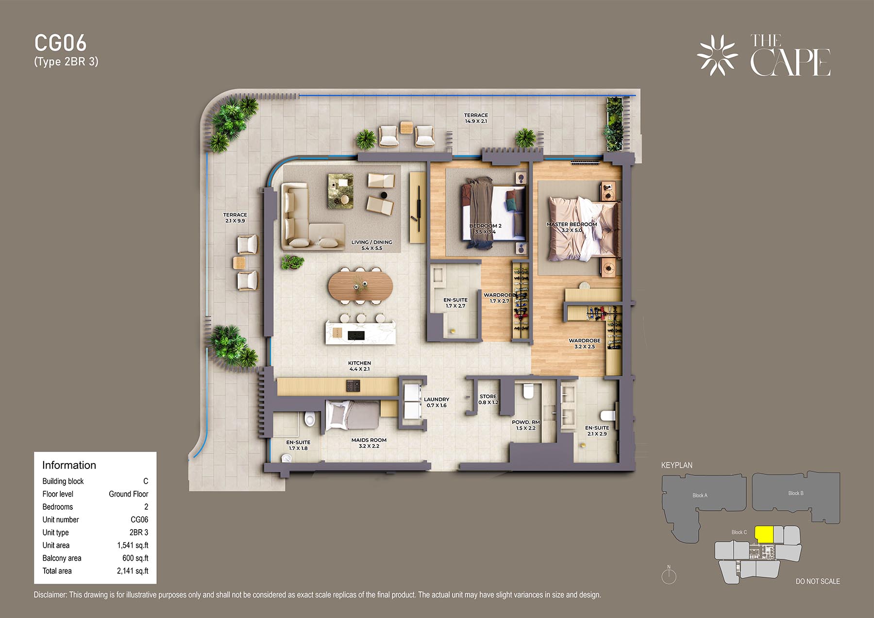 | Block C | 2 Bedrooms + Maid | Ground Floor Unit-CG06 (Type 2BR 3) | 2141.00 Sq Ft | Click Here |