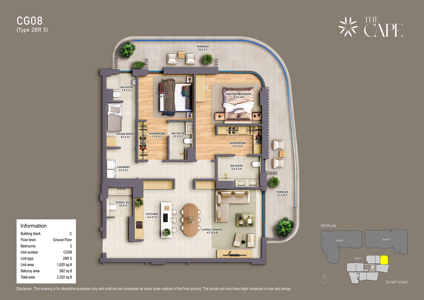 | Block C | 2 Bedrooms + Maid | Ground Floor Unit-CG08 (Type 2BR 5) | 2202.00 Sq Ft | Click Here |