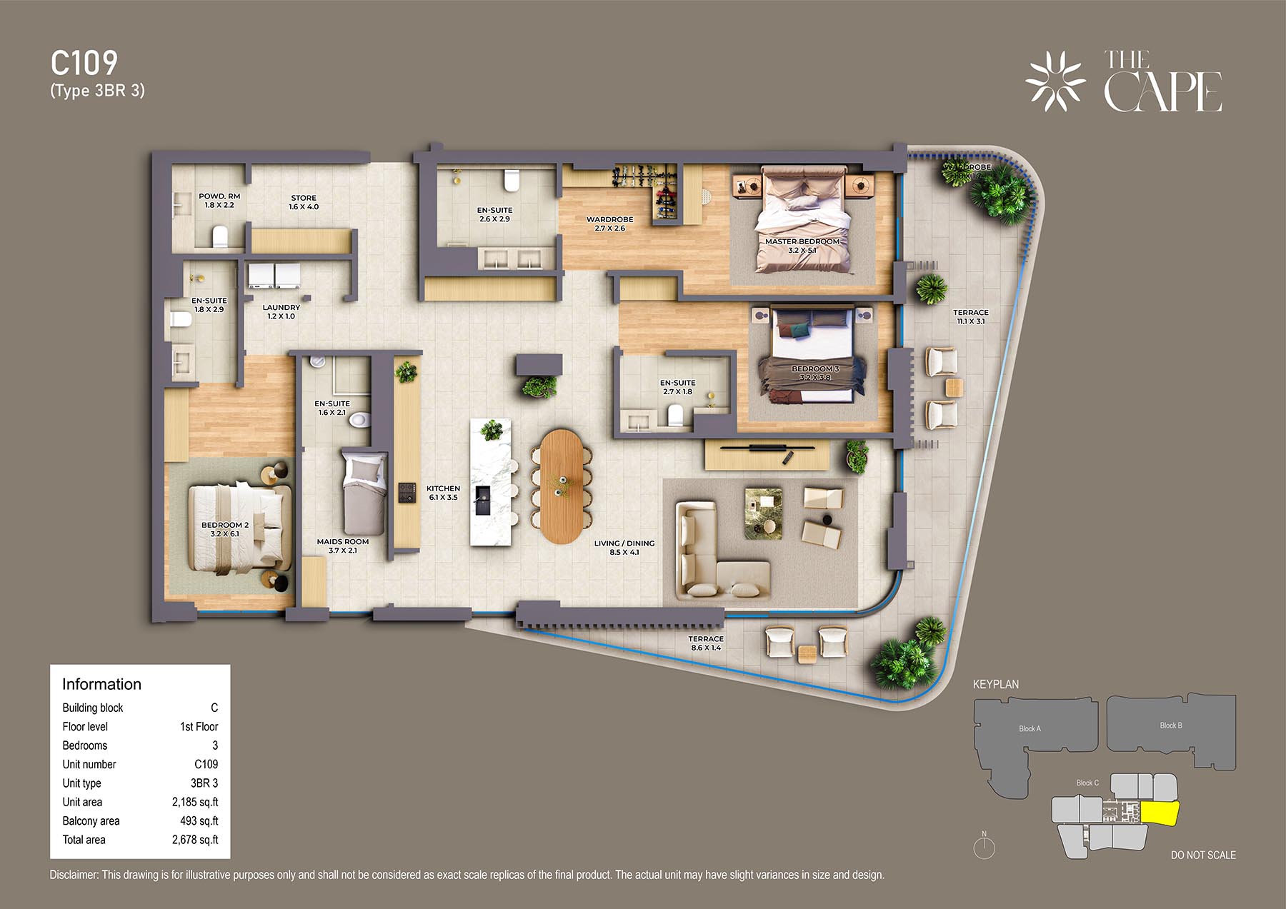 | Block C | 3 Bedrooms + Maid | 1st Floor Unit-C109 (Type 3BR 3) | 2678.00 Sq Ft | Click Here |