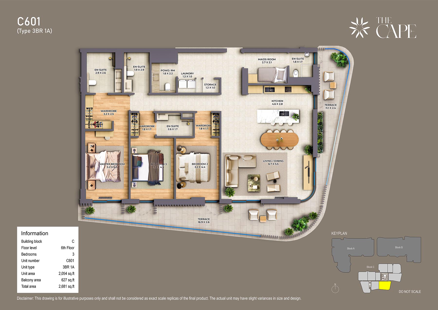 | Block C | 3 Bedrooms + Maid | 6th Floor Unit-C601 (Type 3BR 1A) | 2681.00 Sq Ft | Click Here |