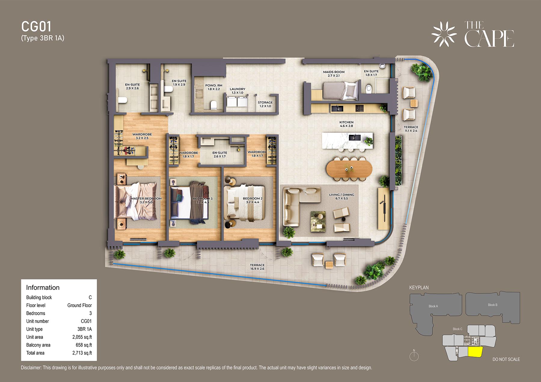 | Block C | 3 Bedrooms + Maid | Ground Floor Unit-CG01 (Type 3BR 1A) | 2713.00 Sq Ft | Click Here |