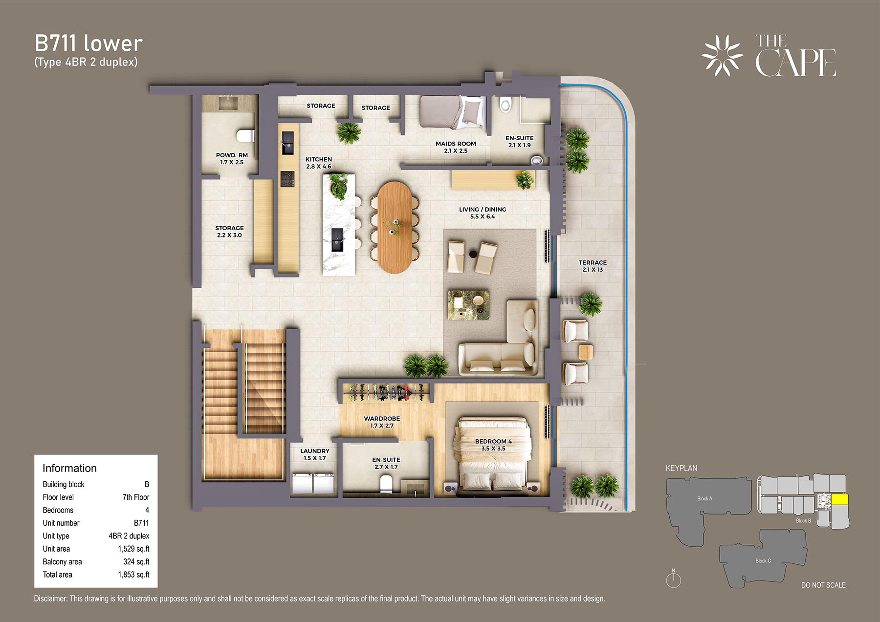 | Block B | 1 Bedroom | 7th Floor Unit-B701 (Type 1BR 1) | 1535.00 Sq Ft | Click Here |