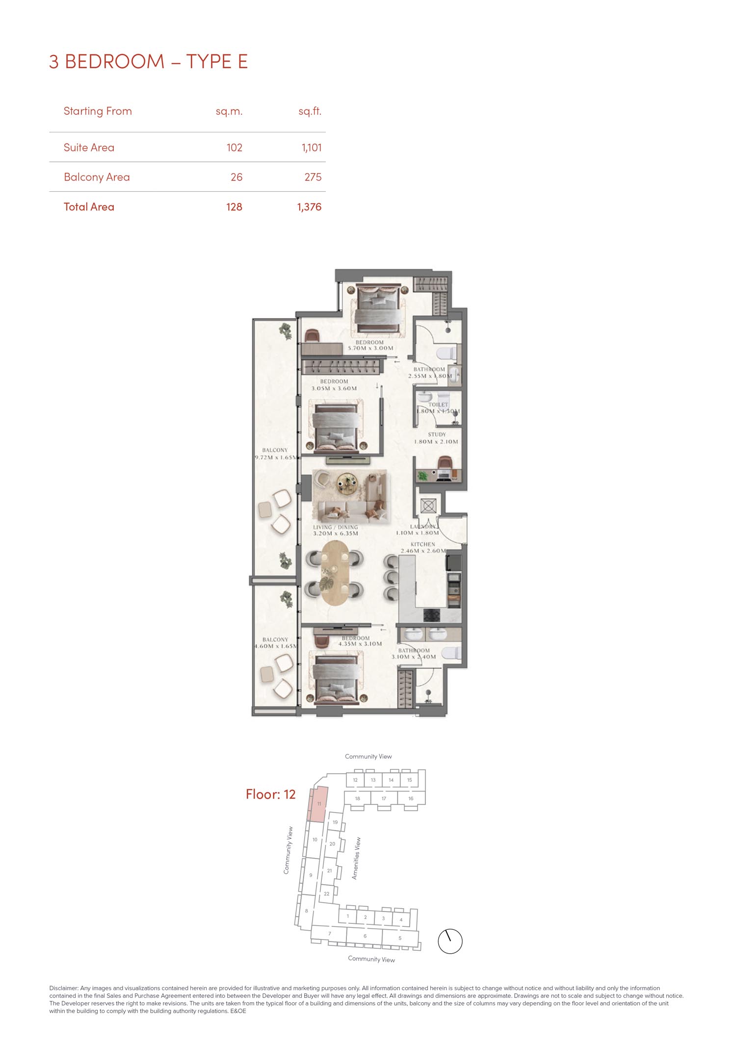 The floor plans in The Taiyo Collection accommodate various forms with studios, 1, 2 and 3-bedroom apartments at ease. Small but elegant studios offer a perfect option to young professionals and first-time purchasers, whereas the one-bedroom layouts will have open living areas, with modernized kitchens and private balconies. The two and three-bedroom homes are large with their own dining space, several bathrooms and en-suite master rooms, which are ideal in the case of large families. Each of the layouts is designed with much concern on natural light, cooling facilities, and rational use of space.