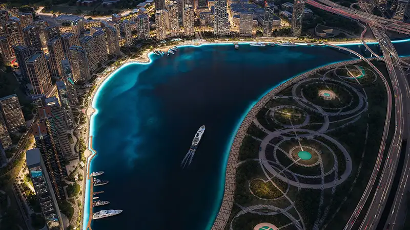 - Residences positioned to capture panoramic views of Dubai Creek, Ras Al Khor Wildlife Sanctuary, and the glittering Downtown skyline.