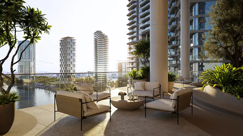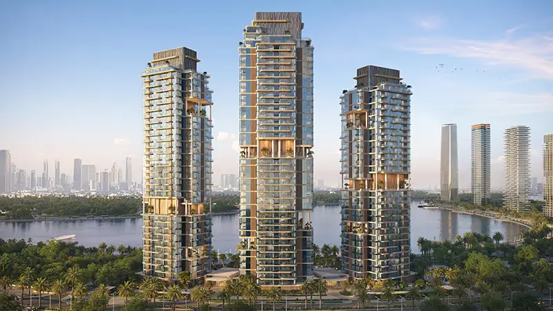 - Three sculptural towers that redefine waterfront living in Dubai Design District, where form and fluidity meet timeless elegance.