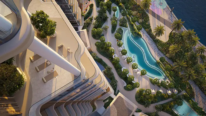 - Thoughtfully crafted 1 to 4-bedroom apartments and penthouses with flowing layouts, expansive terraces, and double-height glass façades.