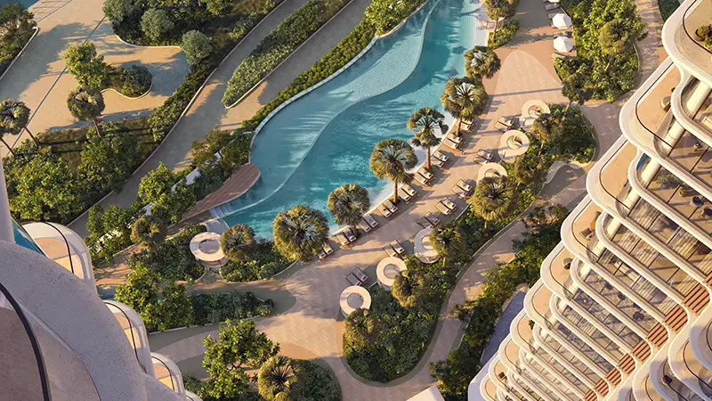 - World-class wellness amenities, featuring a fully equipped fitness club, spa-inspired studios, yoga zones, padel courts, and resort-style swimming pools.
