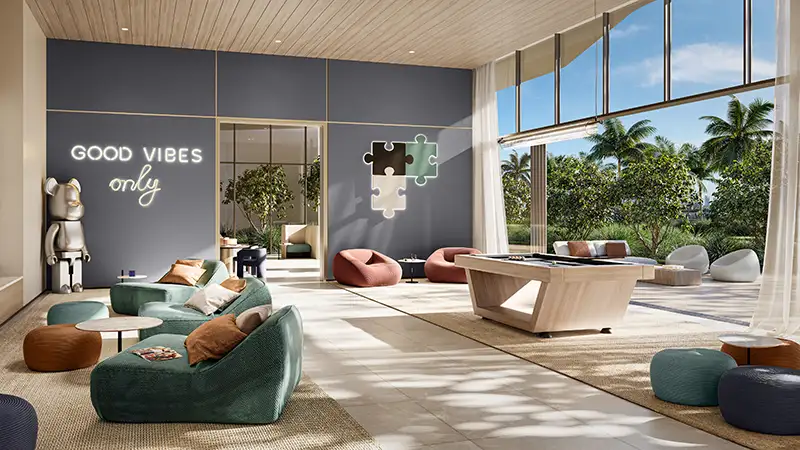 Life is edited for the way you do actually live. Each tower is a curator of a different aspect of lifestyle, which together form a whole connected world. Tower A is the social and cultural heart - the place to be for a double-height lobby, gallery-like co-working areas, elegant lounges and an intimate private cinema designed for screenings, launches and inspired gatherings. Tower B centres the body and breath with a state-of-the-art health club, dedicated yoga and wellness studios, resort-style pools and places made for focus, recovery and renewal. Tower C is a family-life ode where there are warm, intergenerational spaces, indoor/outdoor kids' clubs and quiet corners that make togetherness come easy. All three are tied together in a way that allows residents to flow seamlessly between creative, wellness and family time in the course of a day.