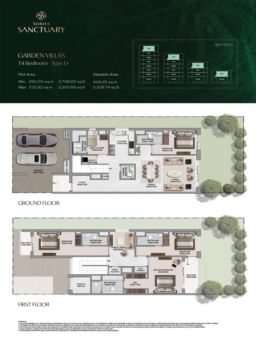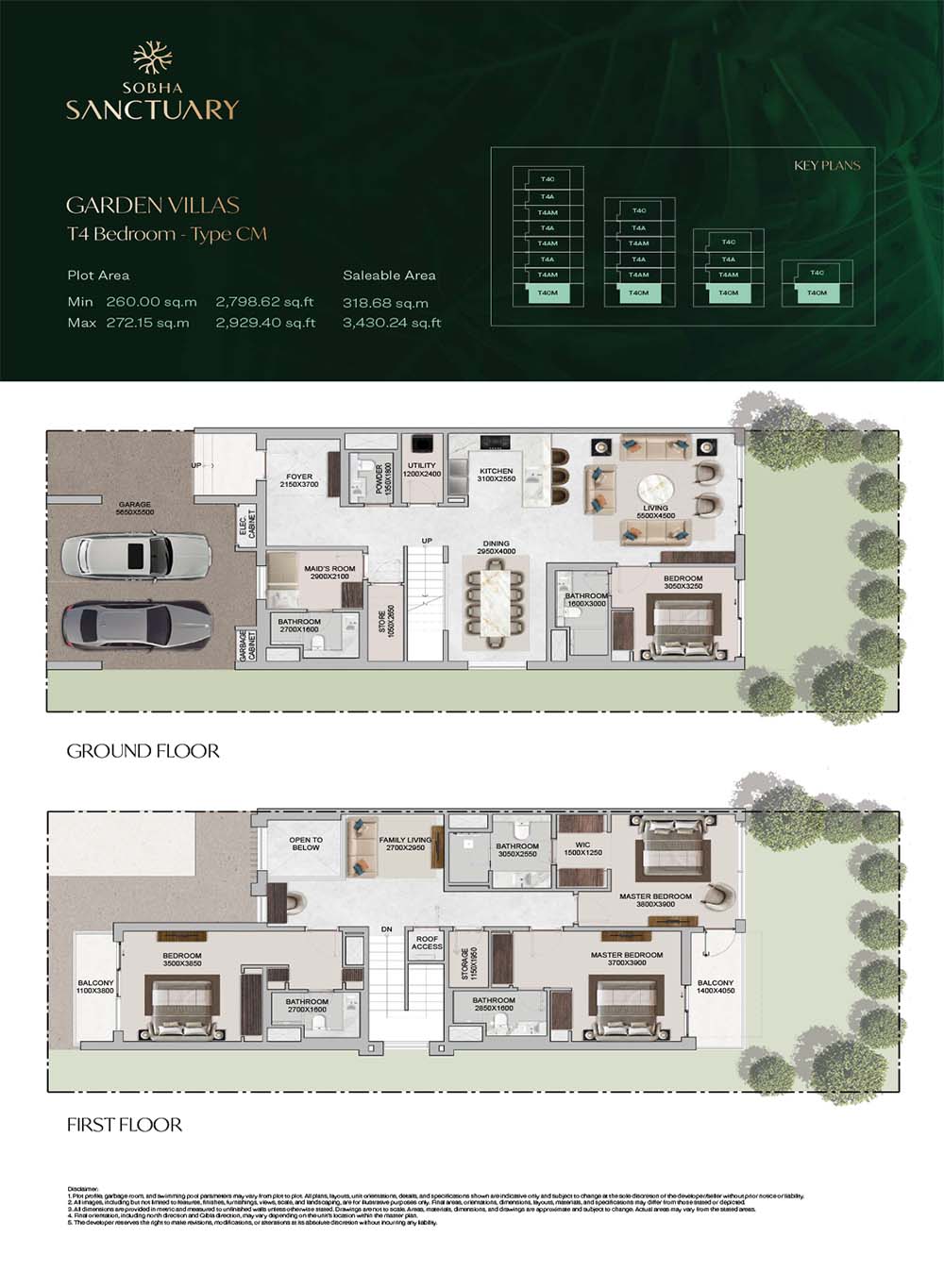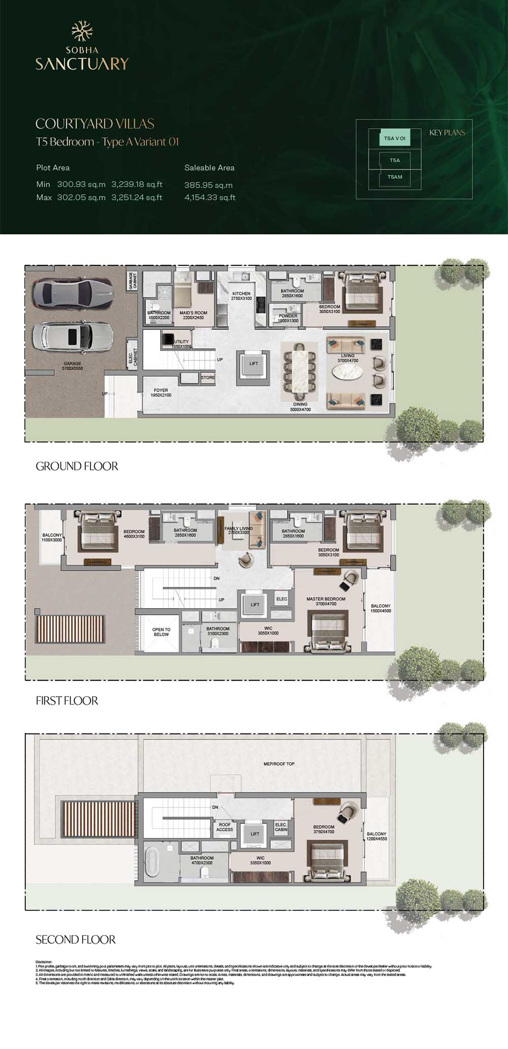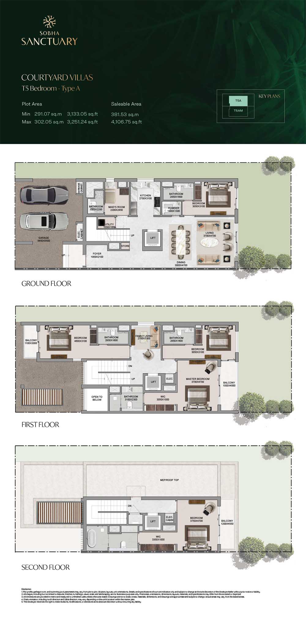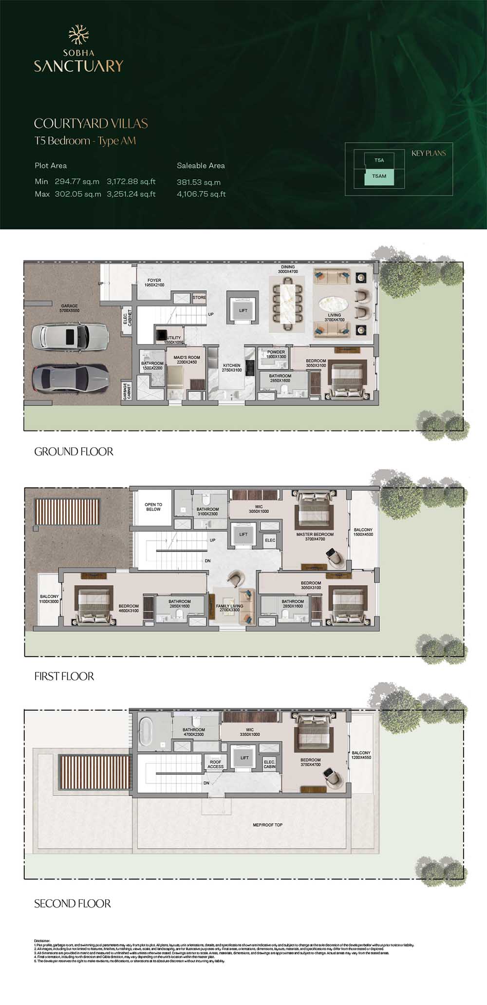 The floor plans of The Greens are designed in a way that provides spacious and well-designed 4 and 5-bedroom garden and courtyard villas. Layouts focus on the free-flowing movement between living, dining, and outdoor spaces with upper floors containing personal bedroom spaces and family lounge. Courtyards, terraces, and rooftop areas bring an extensibility to live outdoors, with some of the villas having internal lifts and study rooms to be even more convenient. Each plan is characterized by the use of natural light, cross-ventilation and spatial balance which help to make it comfortable, functional and flexible over a long period.