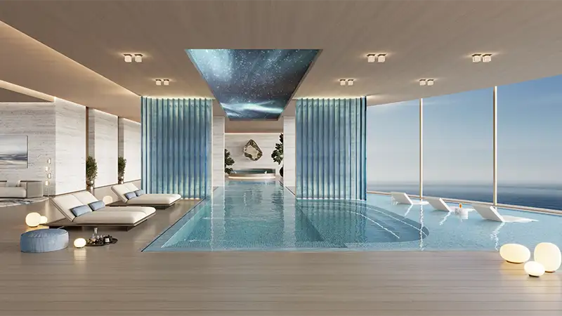 - Arrival and shared spaces are defined by double-height volumes, refined materials, and warm lighting, creating an immediate sense of compose luxury.