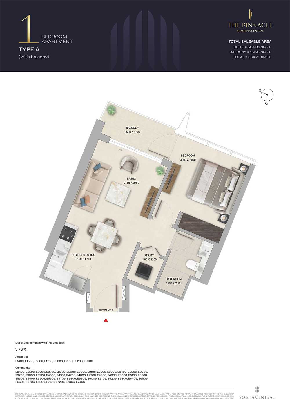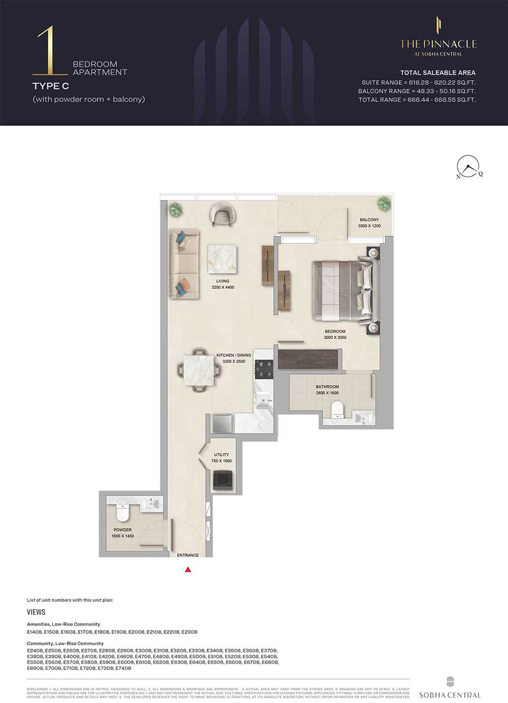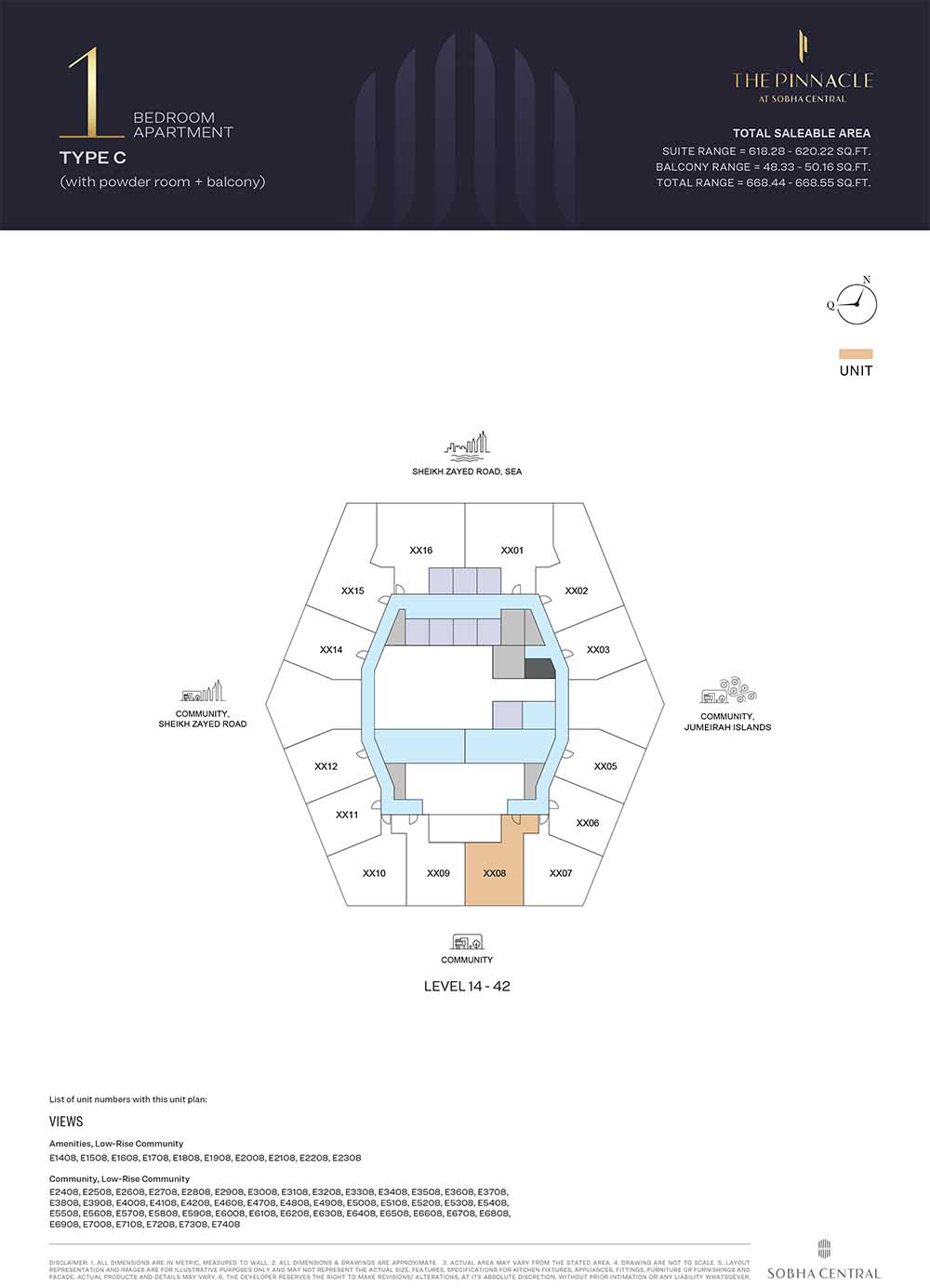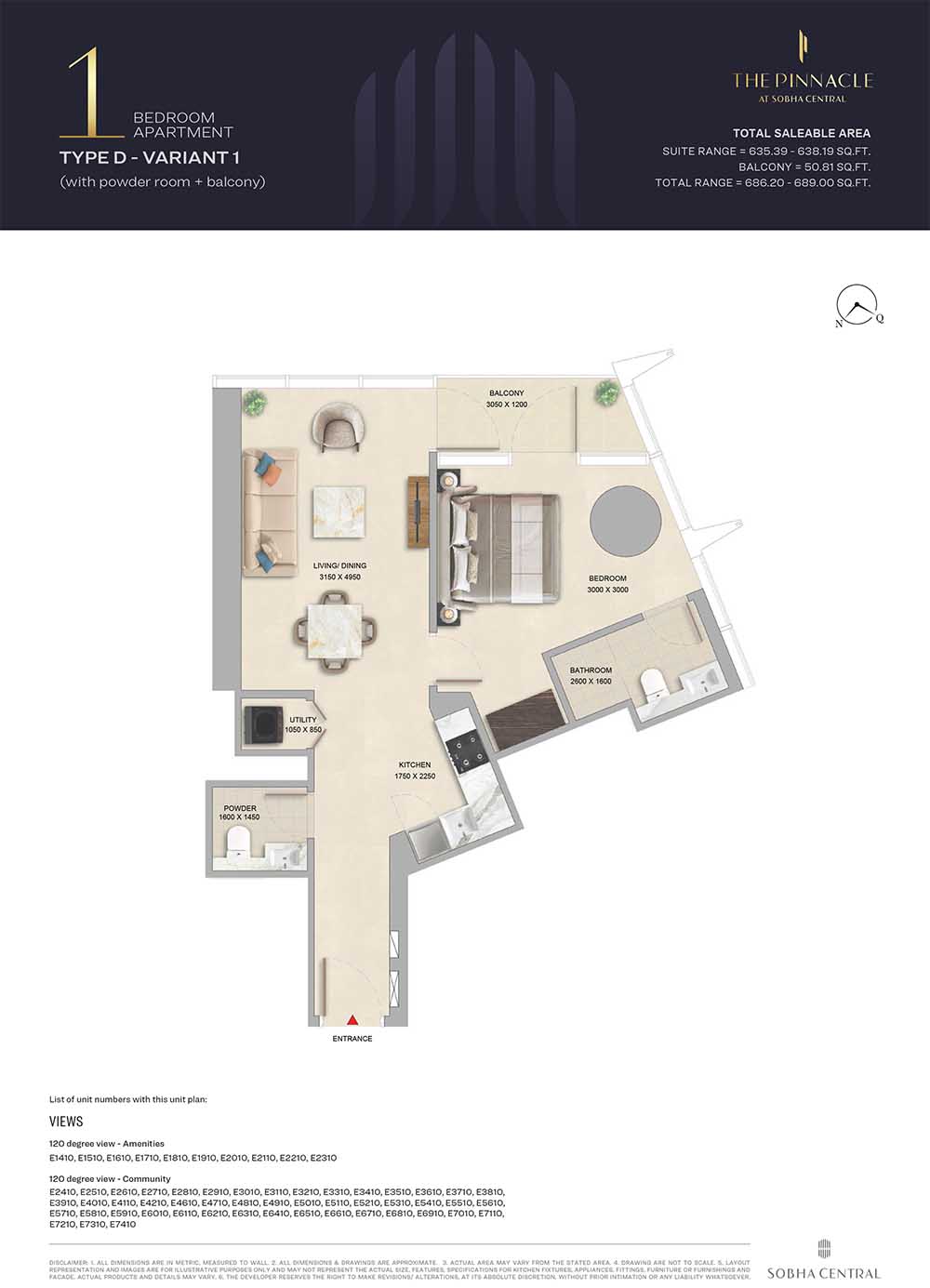 In terms of floor plan, The Pinnacle features limited edition 1 and 2-bedroom apartments with space planning and contemporary use. Every layout is precisely designed to utilize not only maximum space in the area but also concentrated convergence of the natural light and, of utmost importance, it takes care of the stunning panoramic views. The homes have open concept living and dining spaces, which open onto large balconies, and they provide a smooth continuity between the interiors and the magnificent exterior. With quality as the guiding principle of Sobha, the unit has stand-alone quality of finishes, high-end appliances, and smart storage system in their design which makes it a home that is not just lavish and admirably up-to-date, but also practical to live.