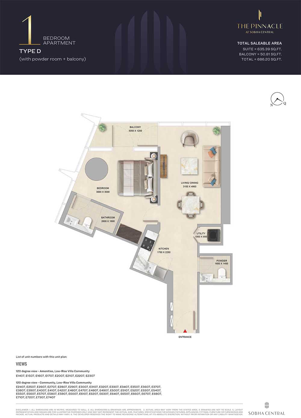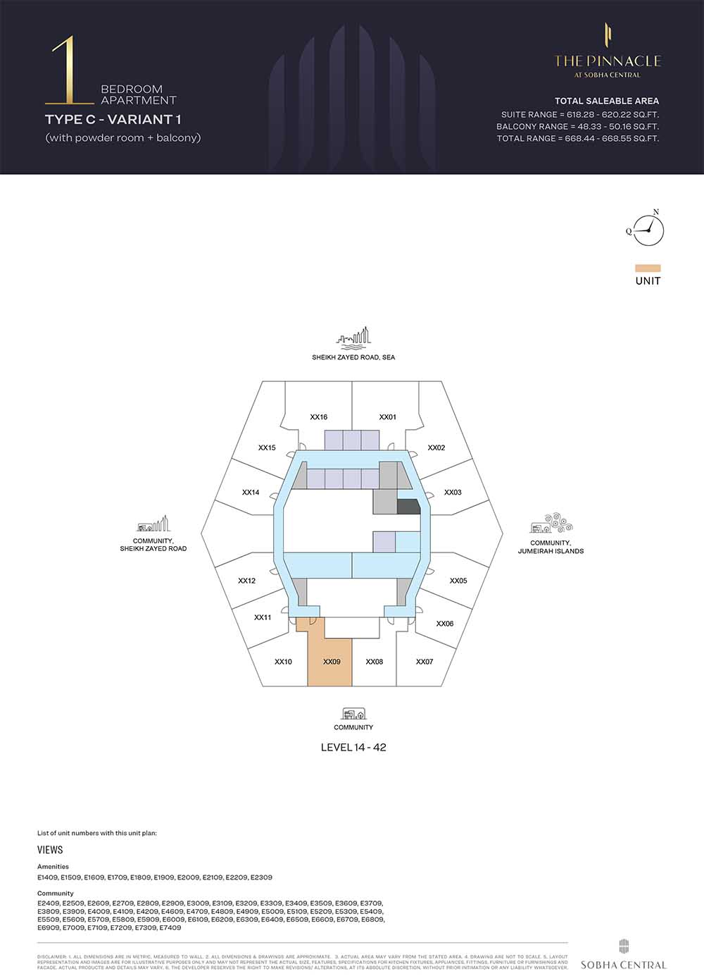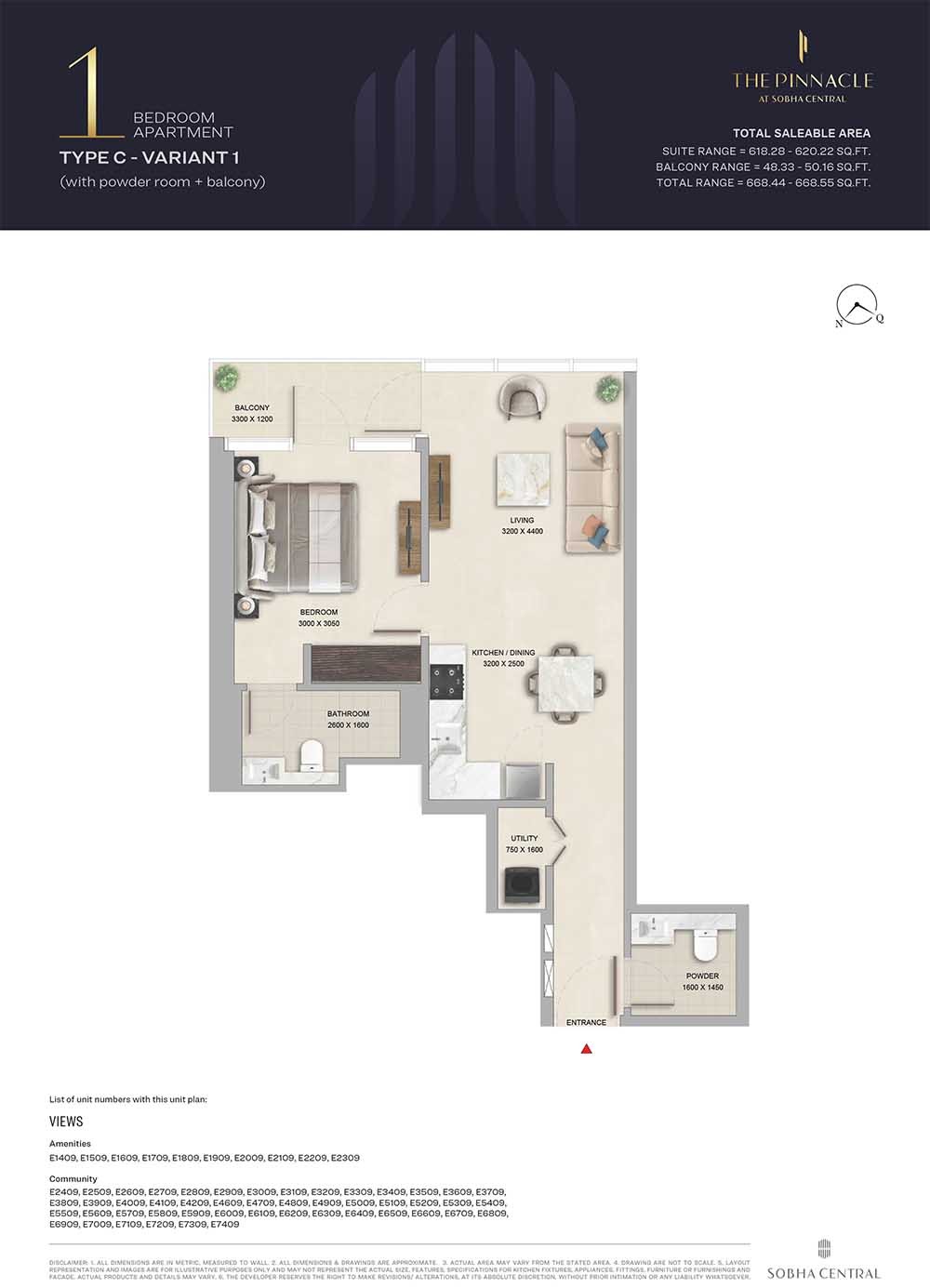 In terms of floor plan, The Pinnacle features limited edition 1 and 2-bedroom apartments with space planning and contemporary use. Every layout is precisely designed to utilize not only maximum space in the area but also concentrated convergence of the natural light and, of utmost importance, it takes care of the stunning panoramic views. The homes have open concept living and dining spaces, which open onto large balconies, and they provide a smooth continuity between the interiors and the magnificent exterior. With quality as the guiding principle of Sobha, the unit has stand-alone quality of finishes, high-end appliances, and smart storage system in their design which makes it a home that is not just lavish and admirably up-to-date, but also practical to live.