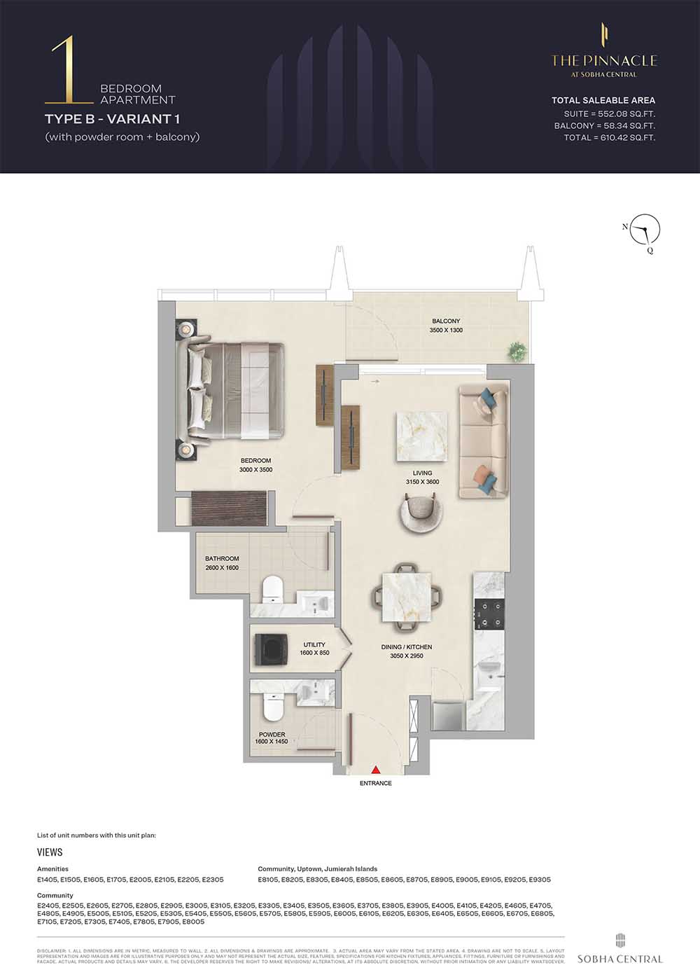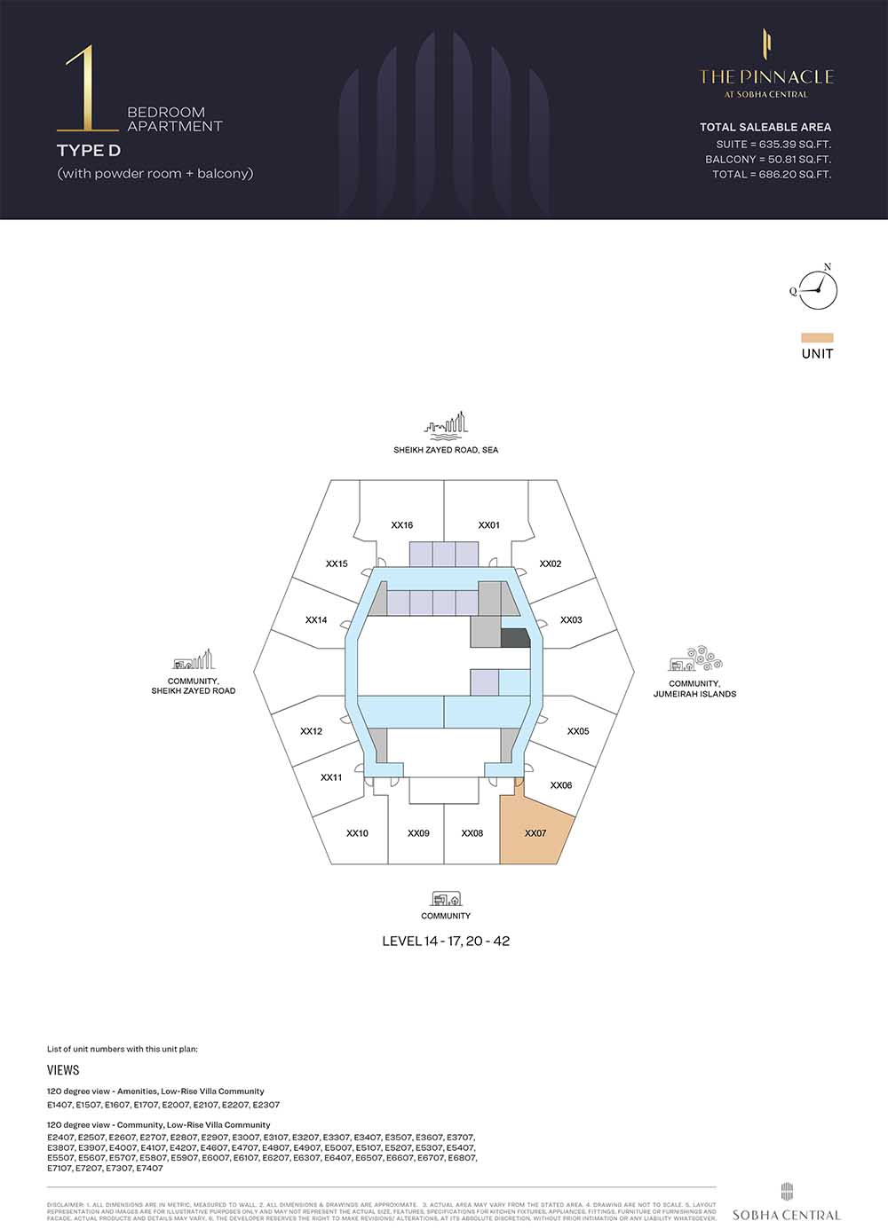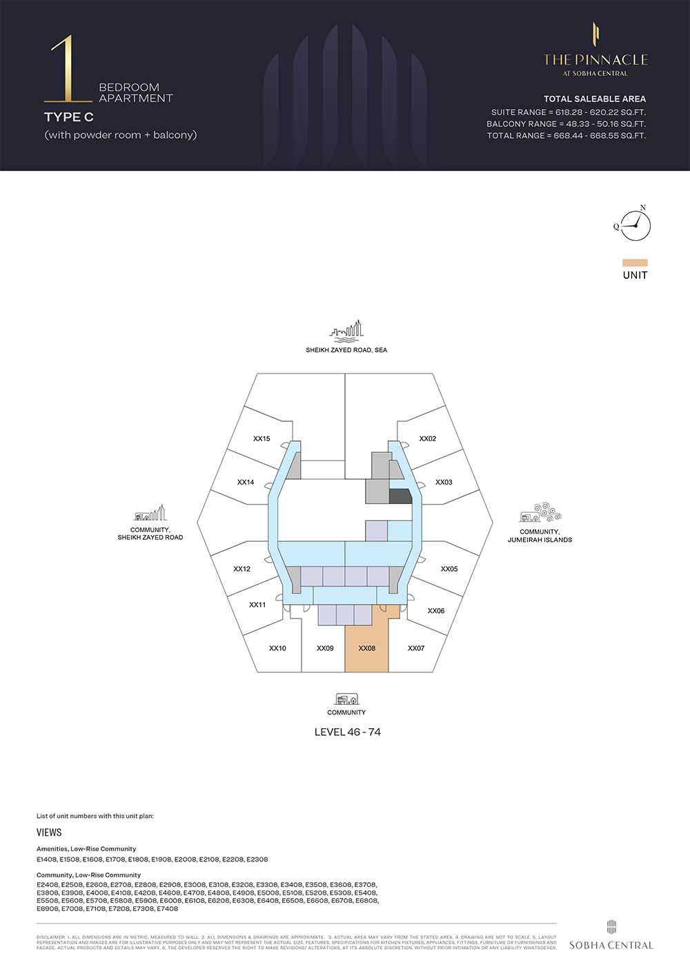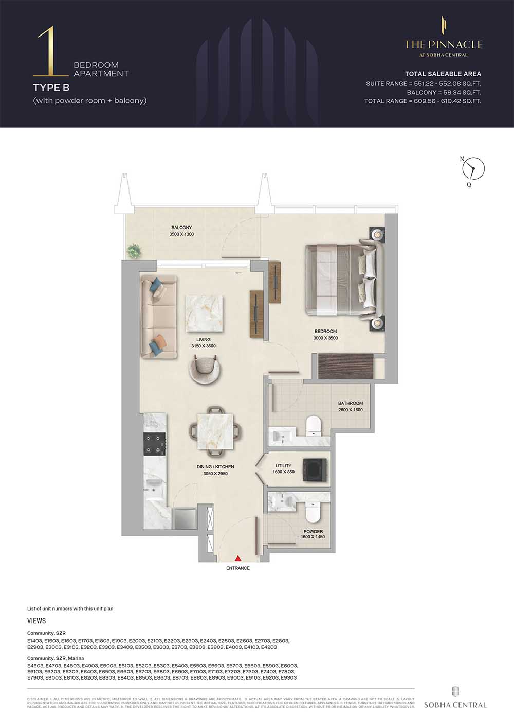 In terms of floor plan, The Pinnacle features limited edition 1 and 2-bedroom apartments with space planning and contemporary use. Every layout is precisely designed to utilize not only maximum space in the area but also concentrated convergence of the natural light and, of utmost importance, it takes care of the stunning panoramic views. The homes have open concept living and dining spaces, which open onto large balconies, and they provide a smooth continuity between the interiors and the magnificent exterior. With quality as the guiding principle of Sobha, the unit has stand-alone quality of finishes, high-end appliances, and smart storage system in their design which makes it a home that is not just lavish and admirably up-to-date, but also practical to live.