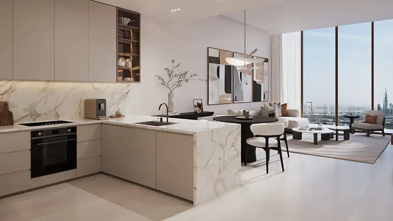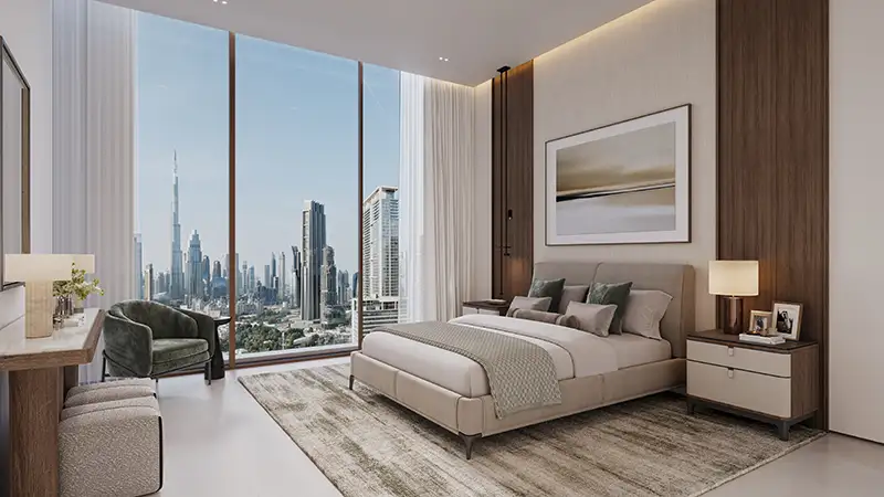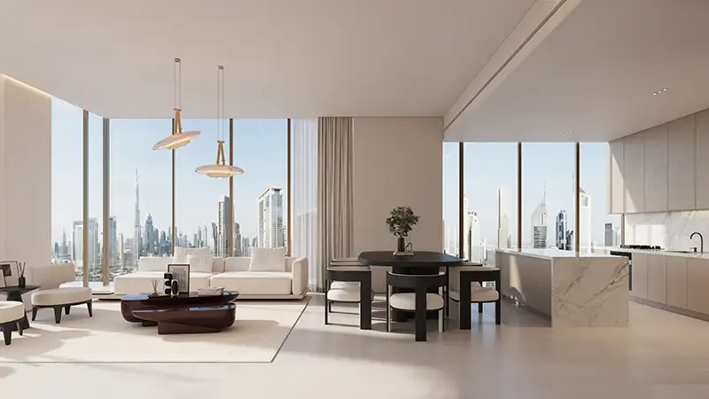 The residences are designed to reflect the atmosphere of modern sophistication through its buildings constructed of clean lines, vertical articulation, and extensive glazing, which embraces natural light. The towers are arranged to provide panoramic view of changing skyline in Dubai, landscaped boulevards, and designed open spaces forming a visual aura between the constructed form and the nature. The support, flourishes, and percentages are highly chosen so that they can portray a classic over a transient fashion with a long-term aesthetic worth. The podium and lower levels are full of lively public world, which smoothly blends residential life and retail, art, and leisure areas without any confusion between personal and shared areas.