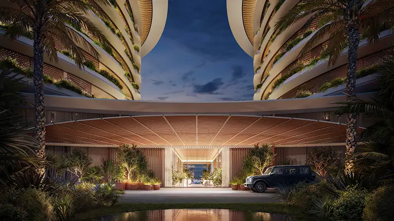 The Dubai Beach Edition master plan is that there will be a balance between the hospitality and residential elements, which are organized over a soothing wave like a property that will span the beach and marina. Hotel and homes are structurally designed to engage one another fluidly, but each of the properties has its own identities; communal facilities, and leisurely ended dining and retail amenities incorporated into the structure providing a smooth flow. The generosity of the open space, forms of landscaped gardens with shaded promenades around the water landscape frames and waterside creates formed shaded retreats, yet imparts transparency of the seas and water. Such transitional places as arrival courts and lobby gardens are meant to blur the border between the world of public and the realm of private.