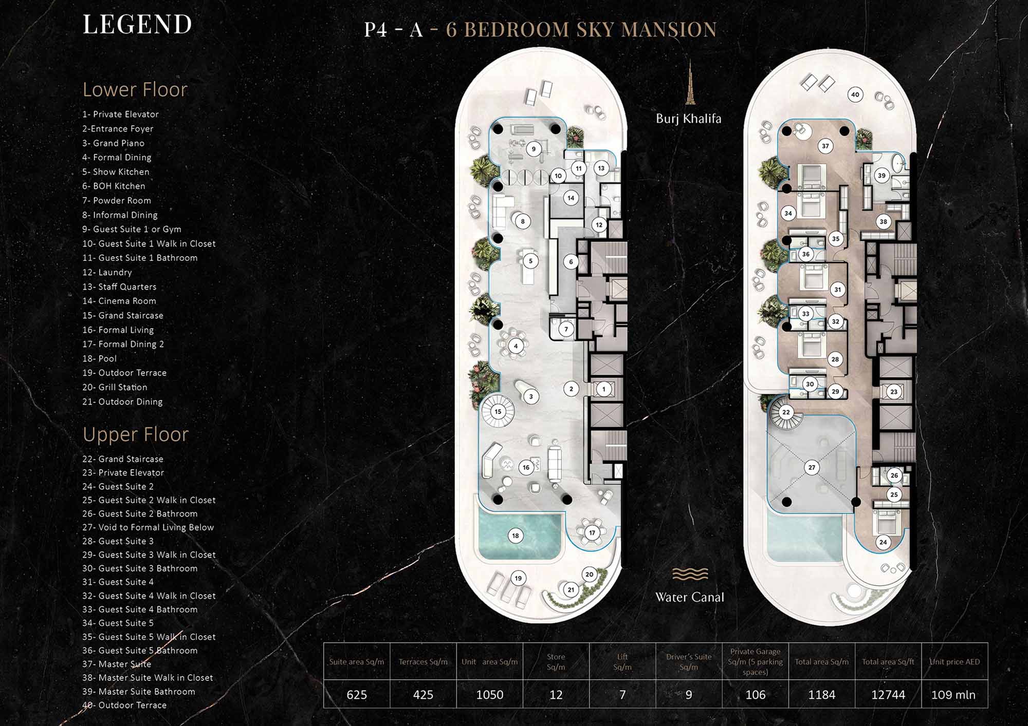 An extra-ordinary oasis of The Rings features delicately designed floor plans of 5, 6 & 7-bedroom sky mansions and palaces. This low-rise property features two buildings with total of 8 sky mansions and 4 sky palaces. Each mega-unit offers the double-height 8 metres ceiling in living areas and 3.5 metres in other rooms with sun-lit and airy ambiance. Many other features of private elevators, personal, gym, pool, garden, a cinema room are available in all units.
