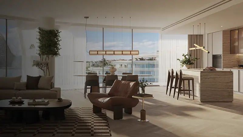 For Aldar, The Row Saadiyat is a master plan, a masterpiece of urban place making in the vision to approach architecture, wellness, and walkability into one unified landscape. The community has seven mid-rise buildings that are strategically placed around social courts and the pedestrian boulevards to both have a sense of personality and privacy. Smooth, sculptural facades of every building are inspired by existing museums around them, and the urban limit of both buildings is enhanced by ground-level boutique F&B and lifestyle activities. The common meeting place provides the community/social and cultural center, which supports creativity by organizing events. Residents are connected to cultural icons and beaches of Saadiyat through landscaped gardens, shaded route systems and sustainable mobility connections.